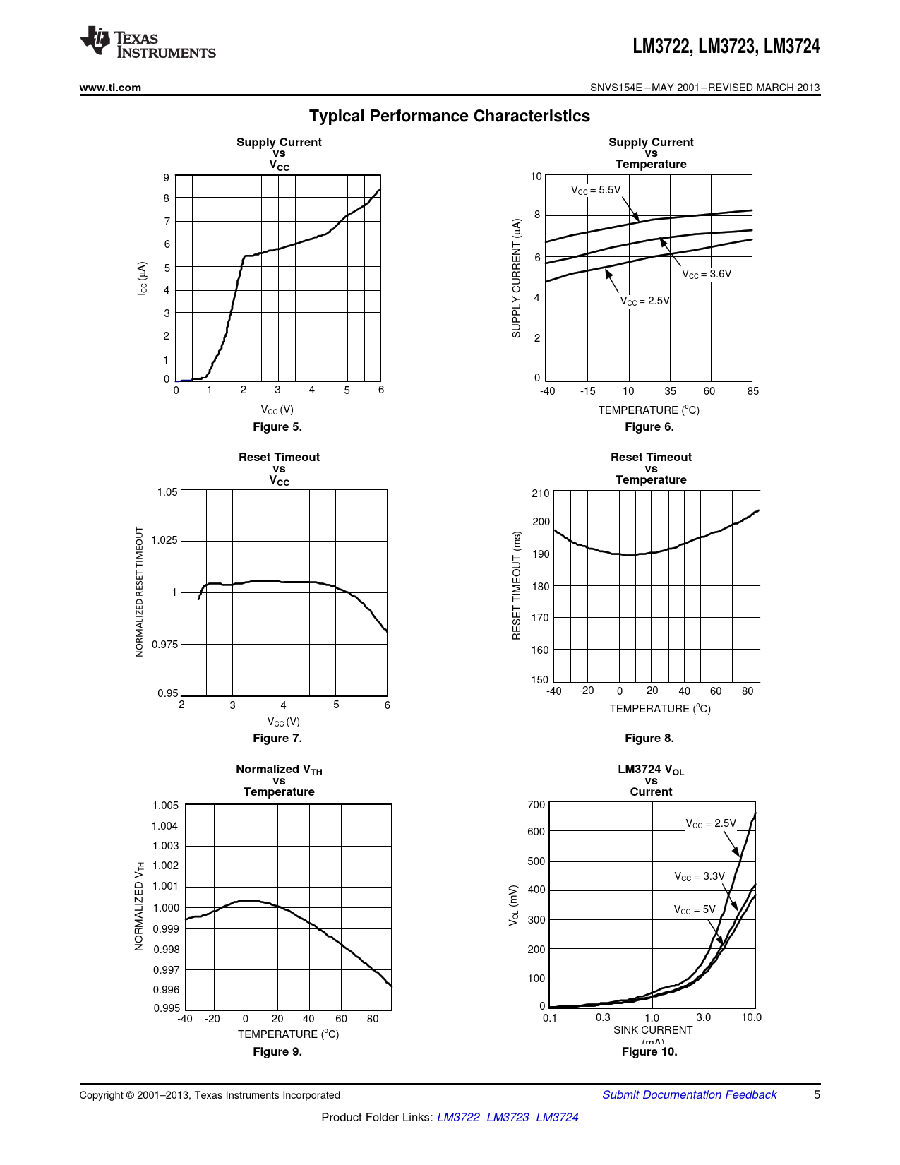 LM3722. , LM3723,. LM3724. www.ti.com. Typical Performance Characteristics. Supply Current. VCC. Temperature. Figure 5. Figure 6