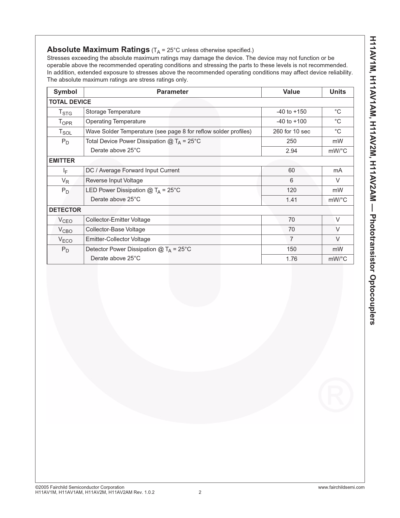 Datasheet H11AV1M, H11AV1AM, H11AV2M, H11AV2AM (Fairchild) - 2