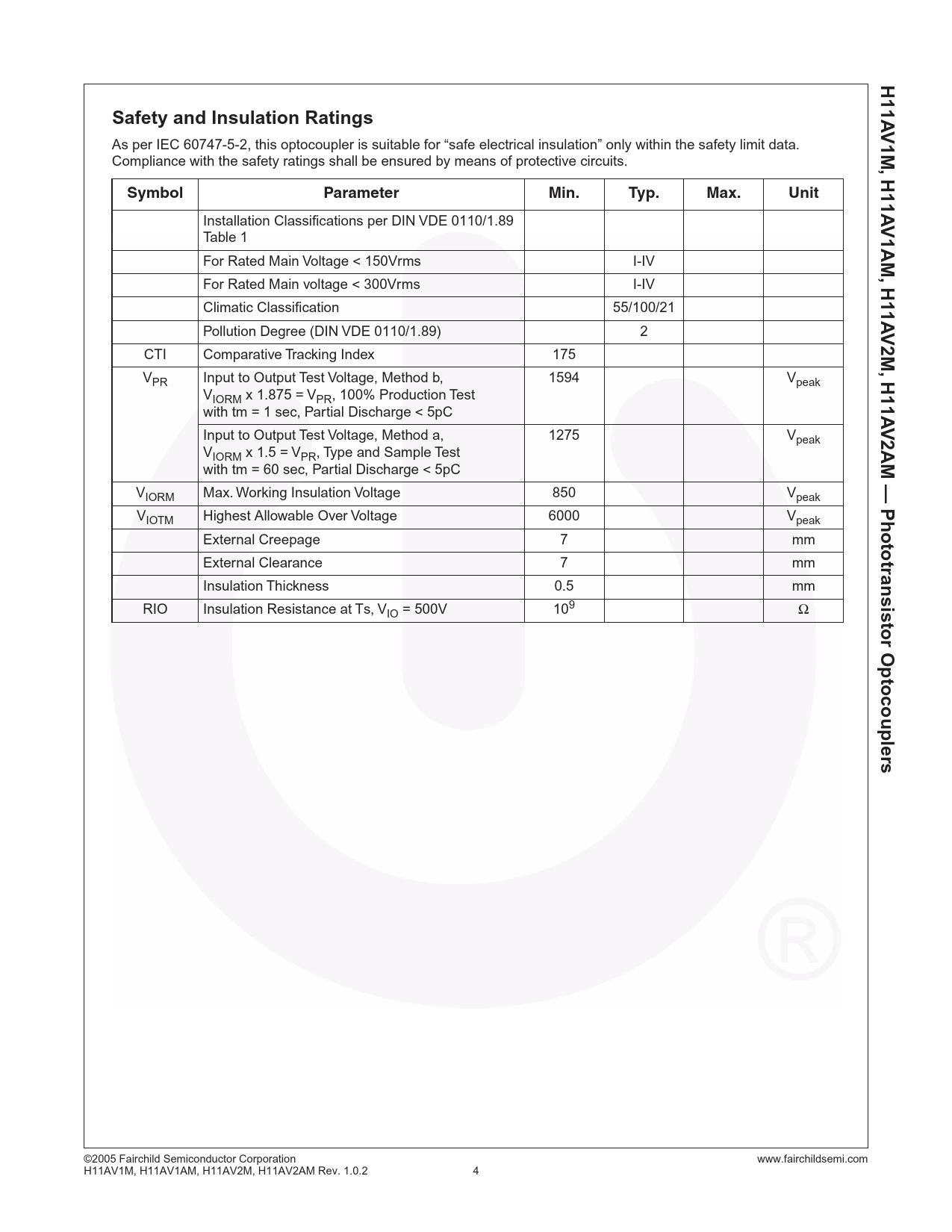 H11A Safety and Insulation Ratings V1M,