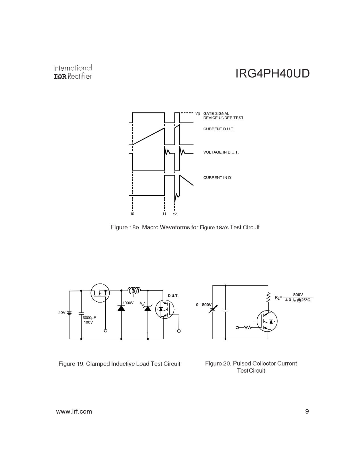 IRG4PH40UD Vg GATE SIGNAL DEVICE UNDER TEST CURRENT D.U.T. VOLTAGE IN D.U.T. CURRENT IN D1 t0 t1 t2 Figure 18e. Macro Waveforms for Figure 18a's Test Circuit L
