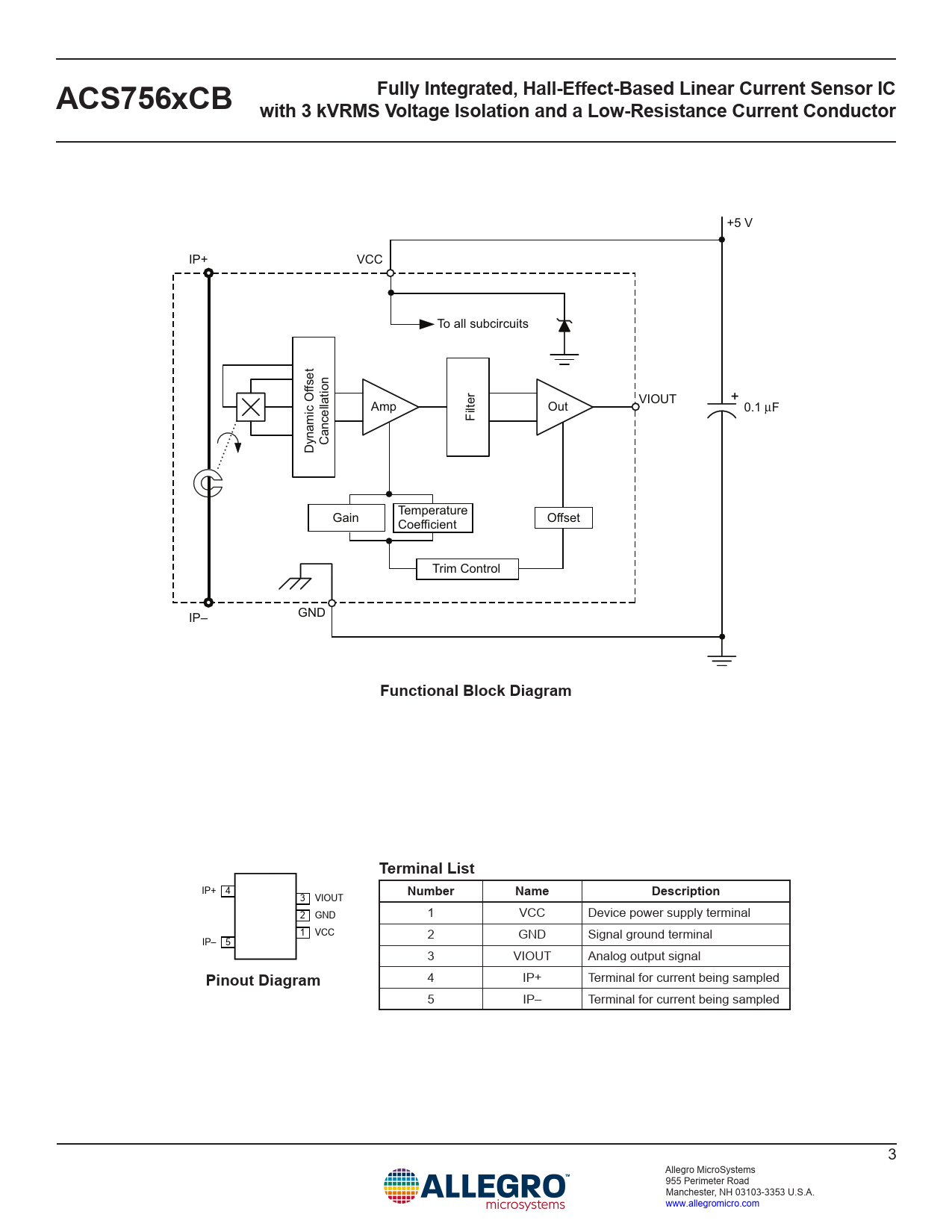 5 IP– Terminal for current being sampled 3 Allegro MicroSystems 955 Perimeter Road Manchester, NH 03103-3353 U.S.A. www.allegromicro.com