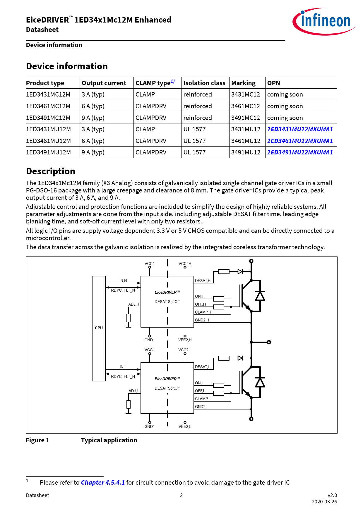 EiceDRIVER™ 1ED34x1Mc12M Enhanced Datasheet Device information Product type Output current CLAMP type1)