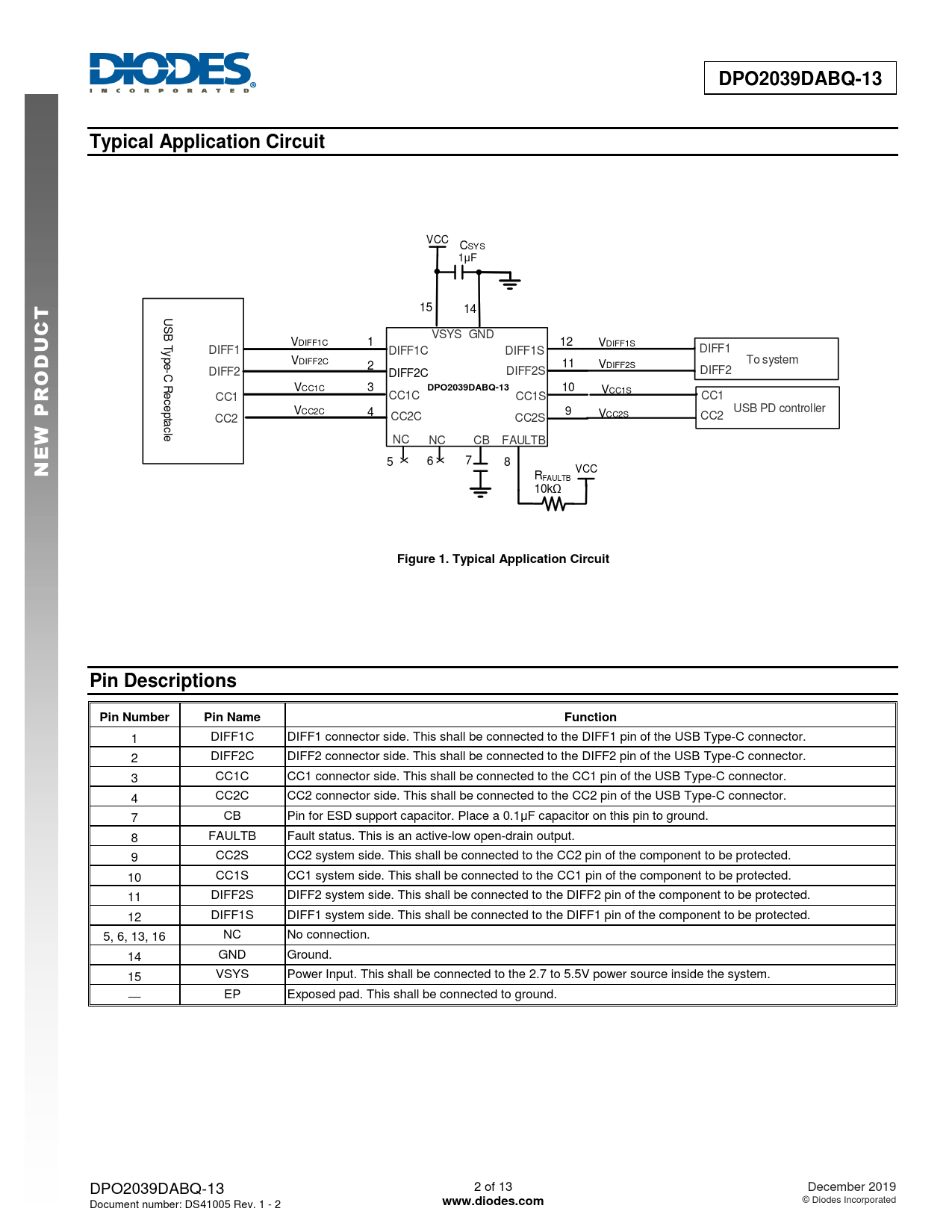 DPO2039DABQ-13. Typical Application Circuit. 2039. BQ-. Figure 1. Typical Application Circuit. Pin Descriptions. Pin Number. Pin Name