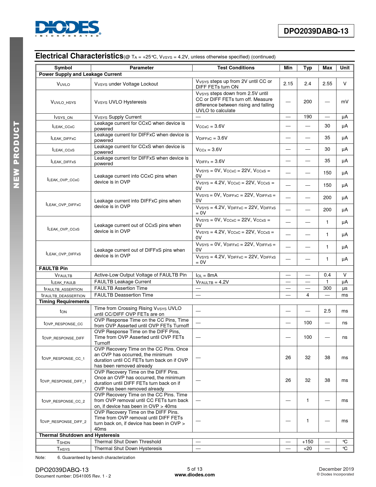 DPO2039DABQ-13. Electrical Characteristics. Symbol. Parameter. Test Conditions. Min. Typ. Max. Unit. Power Supply and Leakage Current