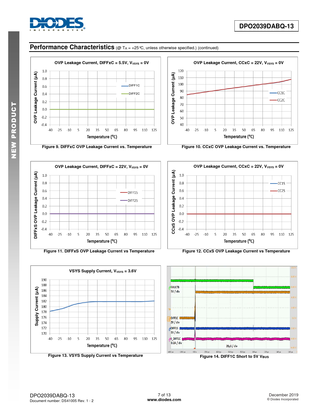 | Pages / Page | 13 / 7 — DPO2039DABQ-13. Performance Characteristics. OVP Leakage Current, DIFFxC … |