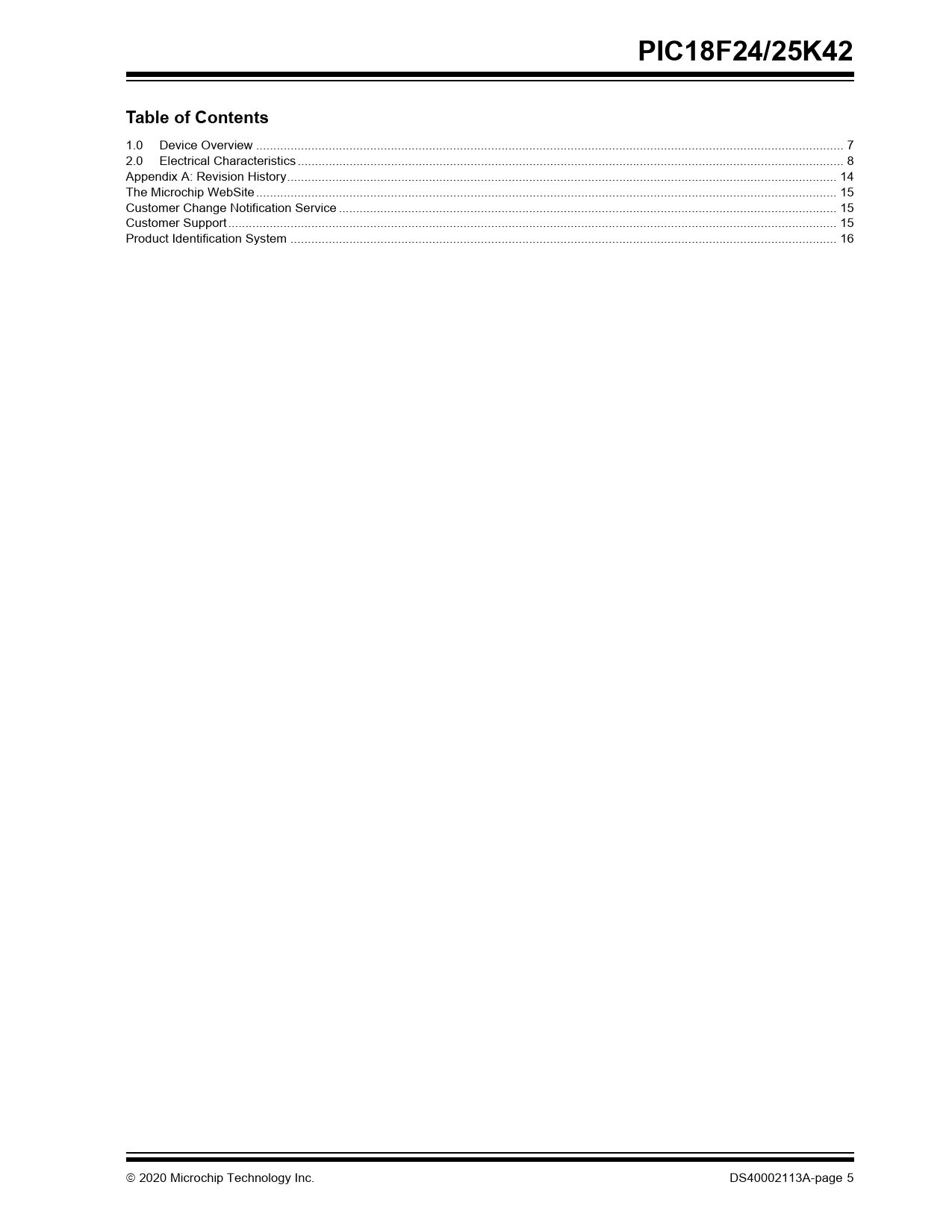 PIC18F24/25K42 Table of Contents