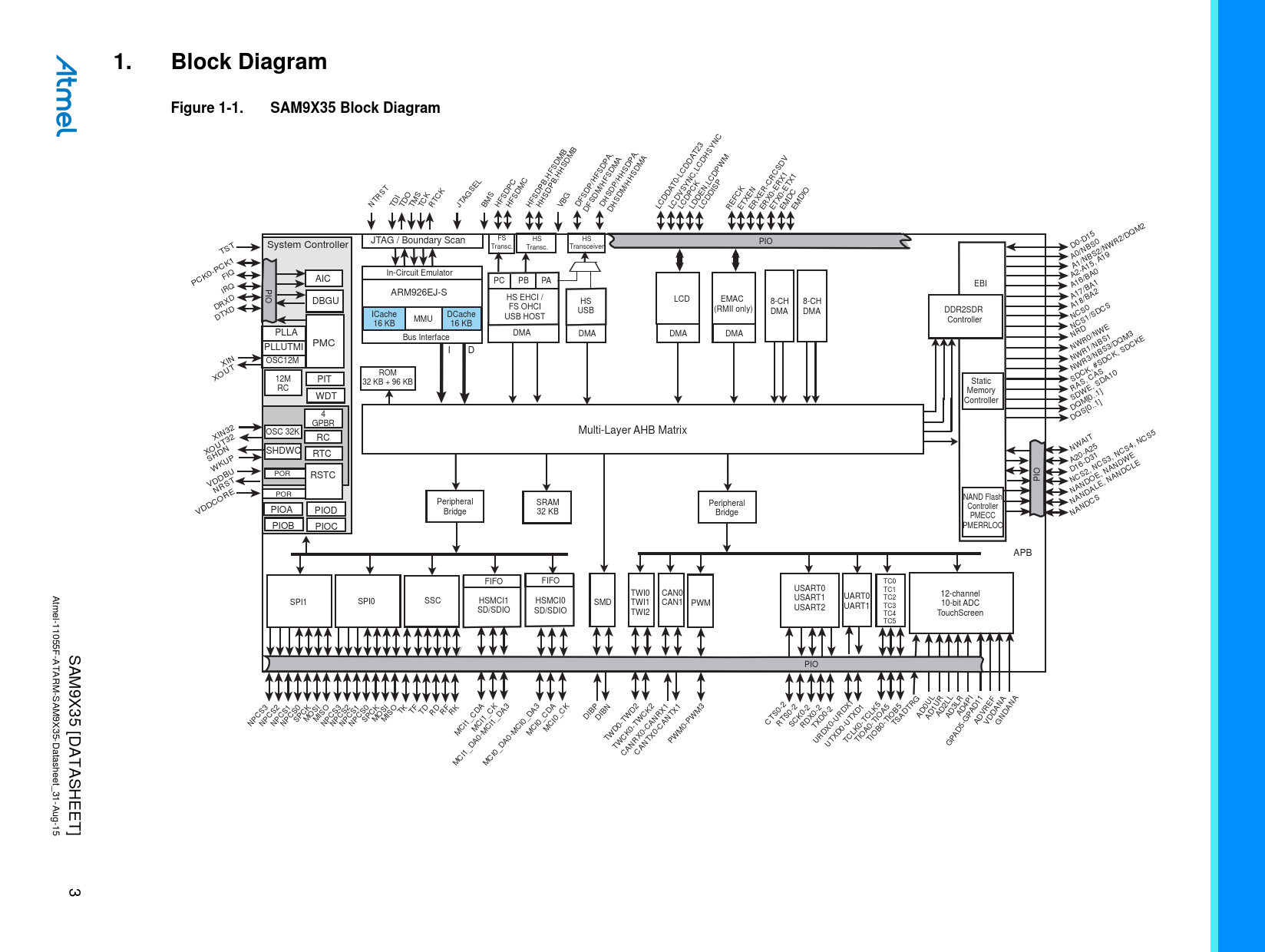 | Pages / Page | 1375 / 3 — Block Diagram. Figure 1-1. SAM9X35 Block Diagram |