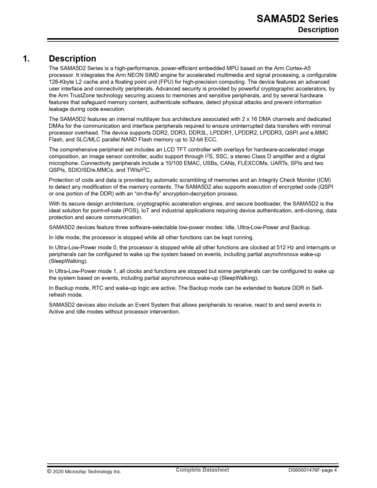 | Pages / Page | 2727 / 4 — SAMA5D2 Series. Description. Complete Datasheet |