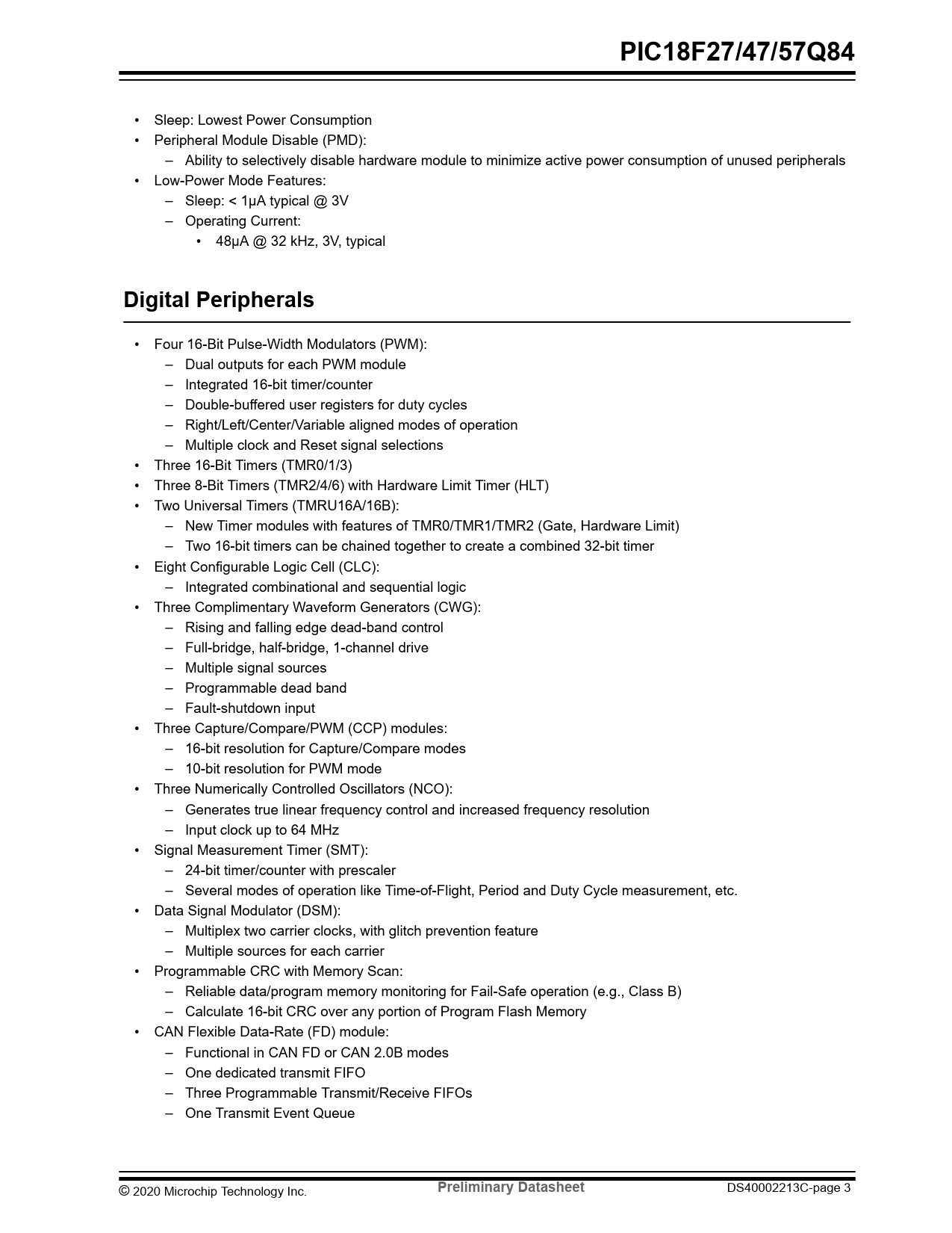 PIC18F27/47/57Q84. Digital Peripherals. Preliminary Datasheet