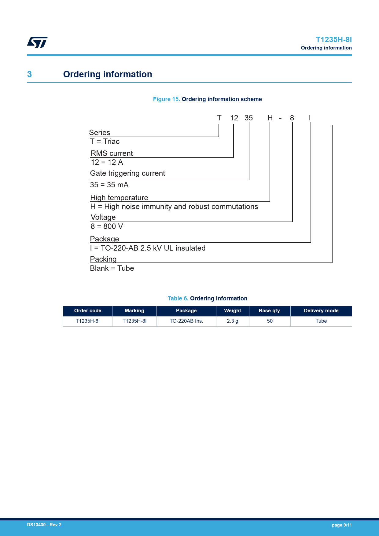 Pages / Page11 / 9 — T1235H-8I. Ordering information. Figure 15. Ordering information scheme. …