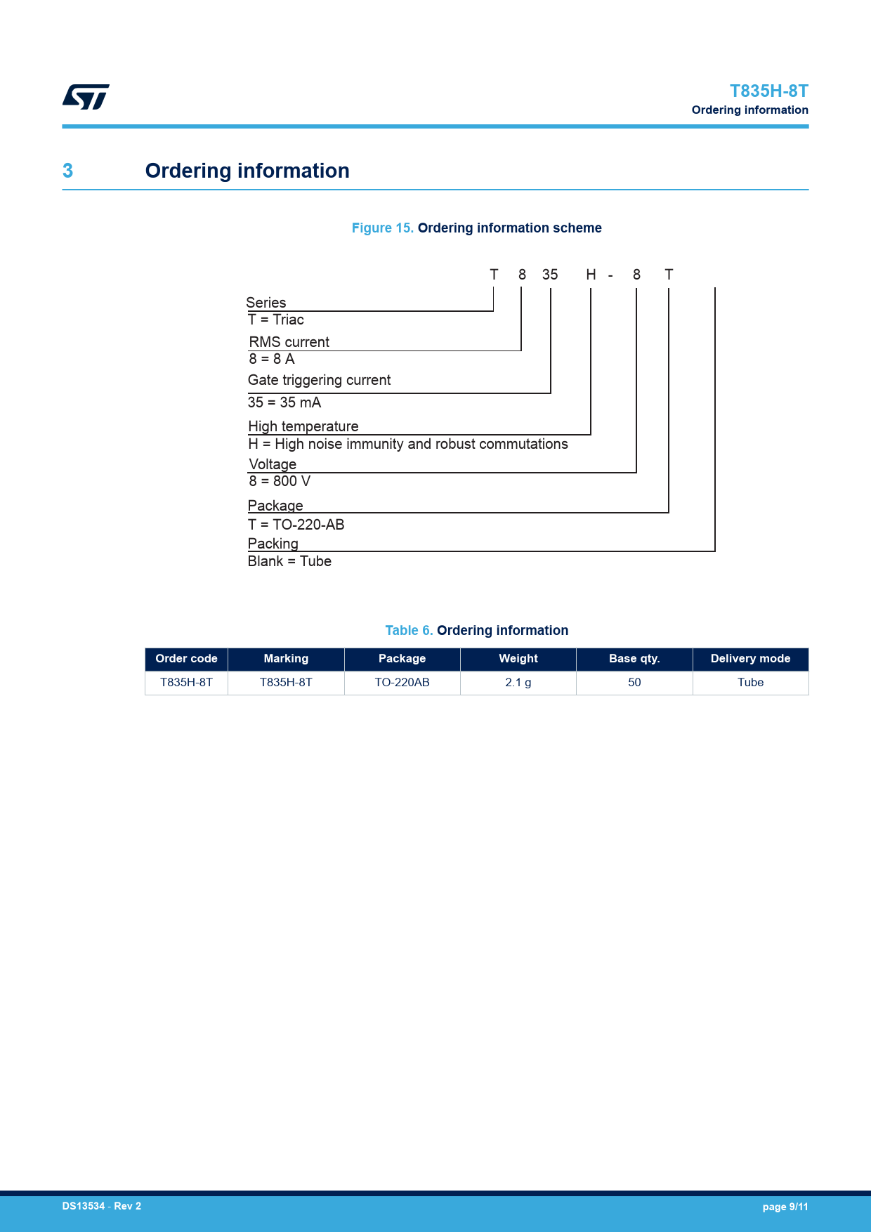 Pages / Page11 / 9 — T835H-8T. Ordering information. Figure 15. Ordering information scheme. …