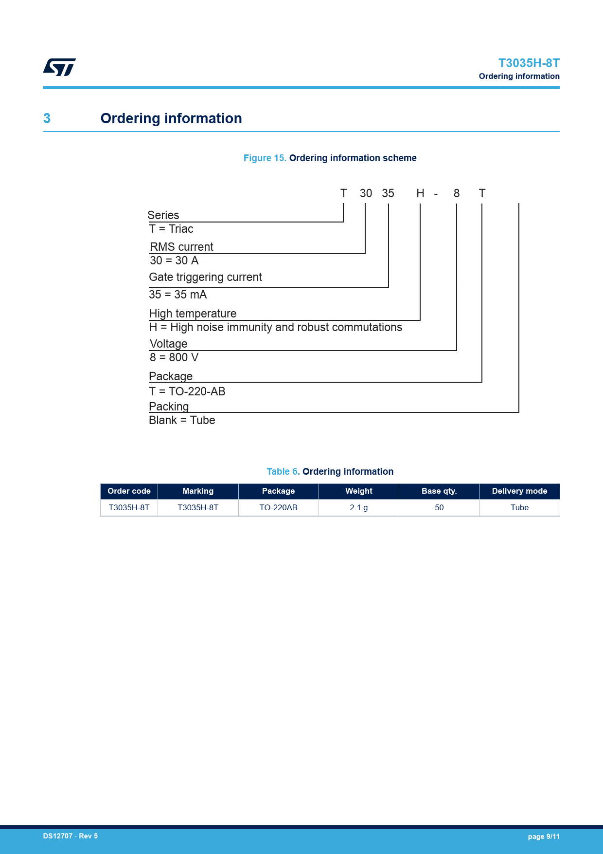 Pages / Page11 / 9 — T3035H-8T. Ordering information. Figure 15. Ordering information scheme. …