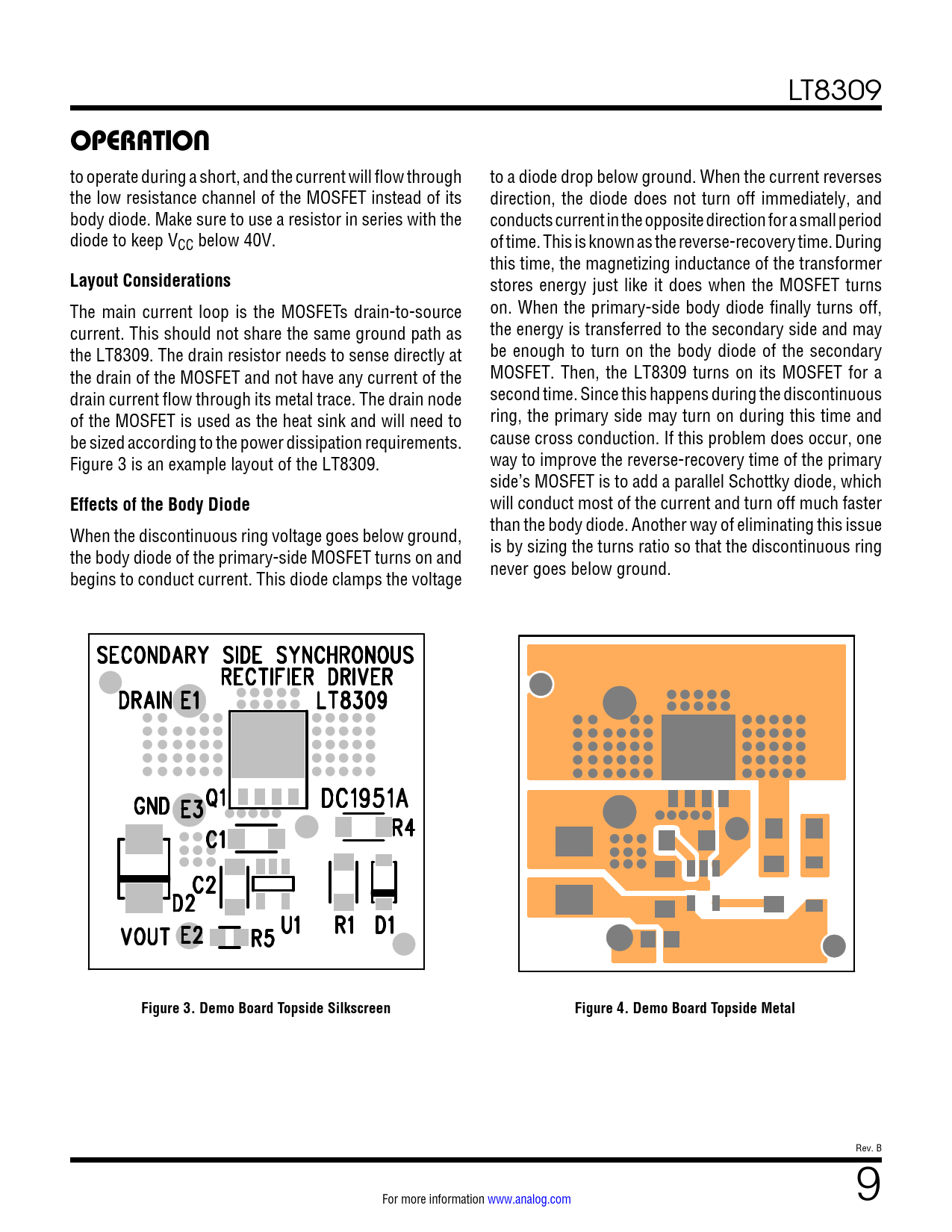 OPERATION. Layout Considerations. Effects of the Body Diode. Figure 3. Demo Board Topside Silkscreen