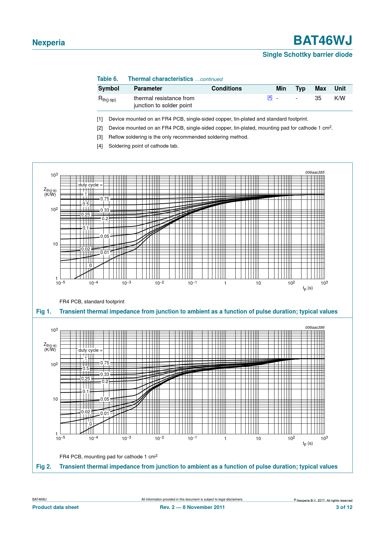 | Pages / Page | 12 / 3 — Nexperia. BAT46WJ. Single Schottky barrier diode. Table 6. Thermal … |