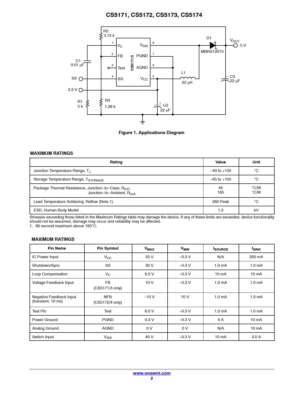 CS5171, CS5172, CS5173, CS5174. CS5171/3. Figure 1. Applications Diagram. MAXIMUM RATINGS. Rating. Value. Unit. Pin Name. Pin Symbol