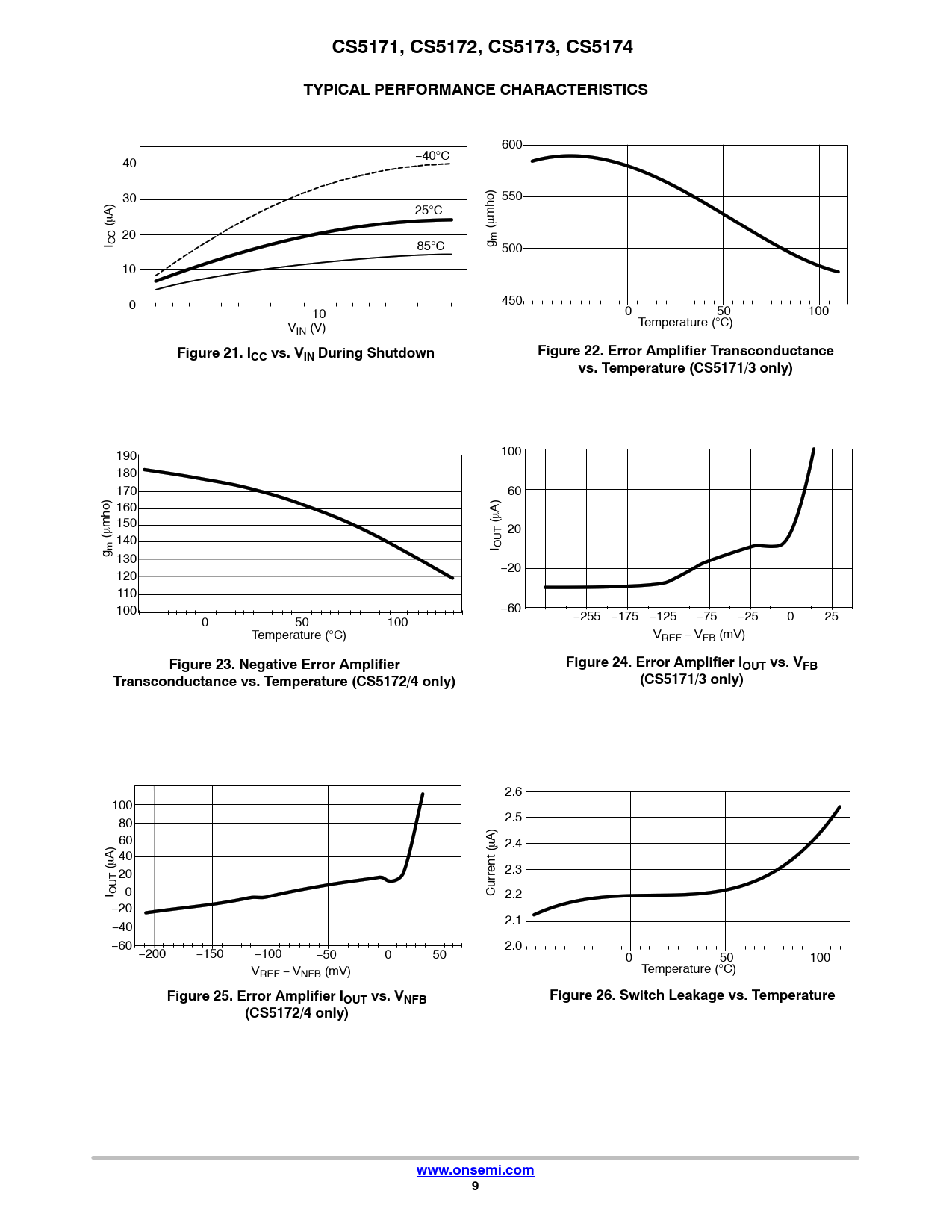 Figure 25. Error Amplifier IOUT vs. VNFB Figure 26. Switch Leakage vs. Temperature (CS5172/4 only) www.onsemi.com 9