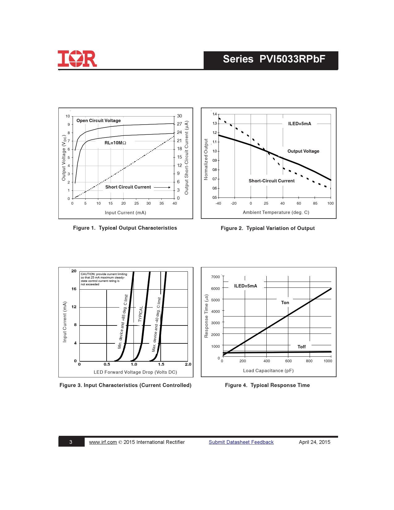 Series PVI5033RPbF. Open Circuit Voltage. ILED=5mA. RL=10M. Output Voltage. Short-Circuit Current. Short Circuit Current