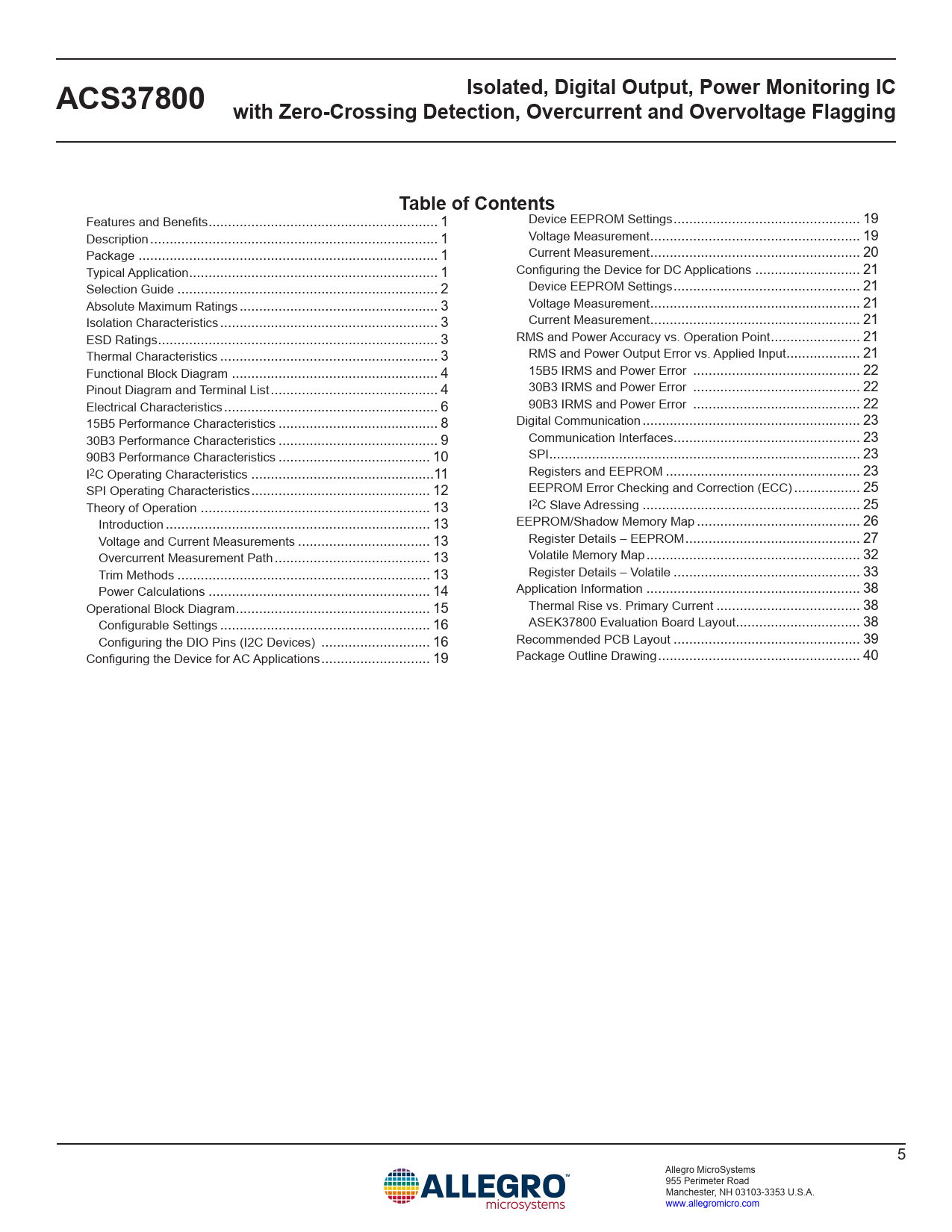 Isolated, Digital Output, Power Monitoring IC ACS37800 with Zero-Crossing Detection, Overcurrent and Overvoltage Flagging Table of Contents