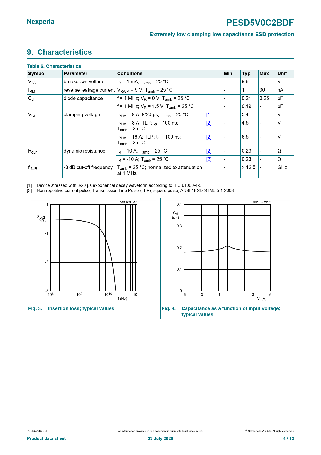 | Pages / Page | 12 / 4 — Nexperia. PESD5V0C2BDF. Extremely low clamping low capacitance ESD … |