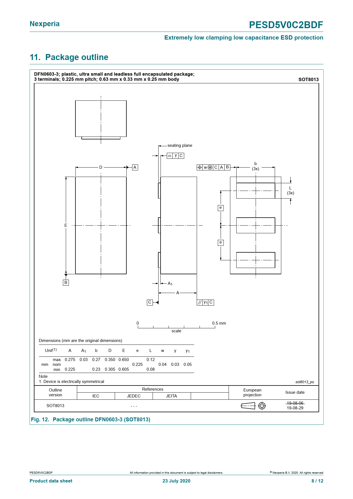 Nexperia. PESD5V0C2BDF. Extremely low clamping low capacitance ESD protection. 11. Package outline
