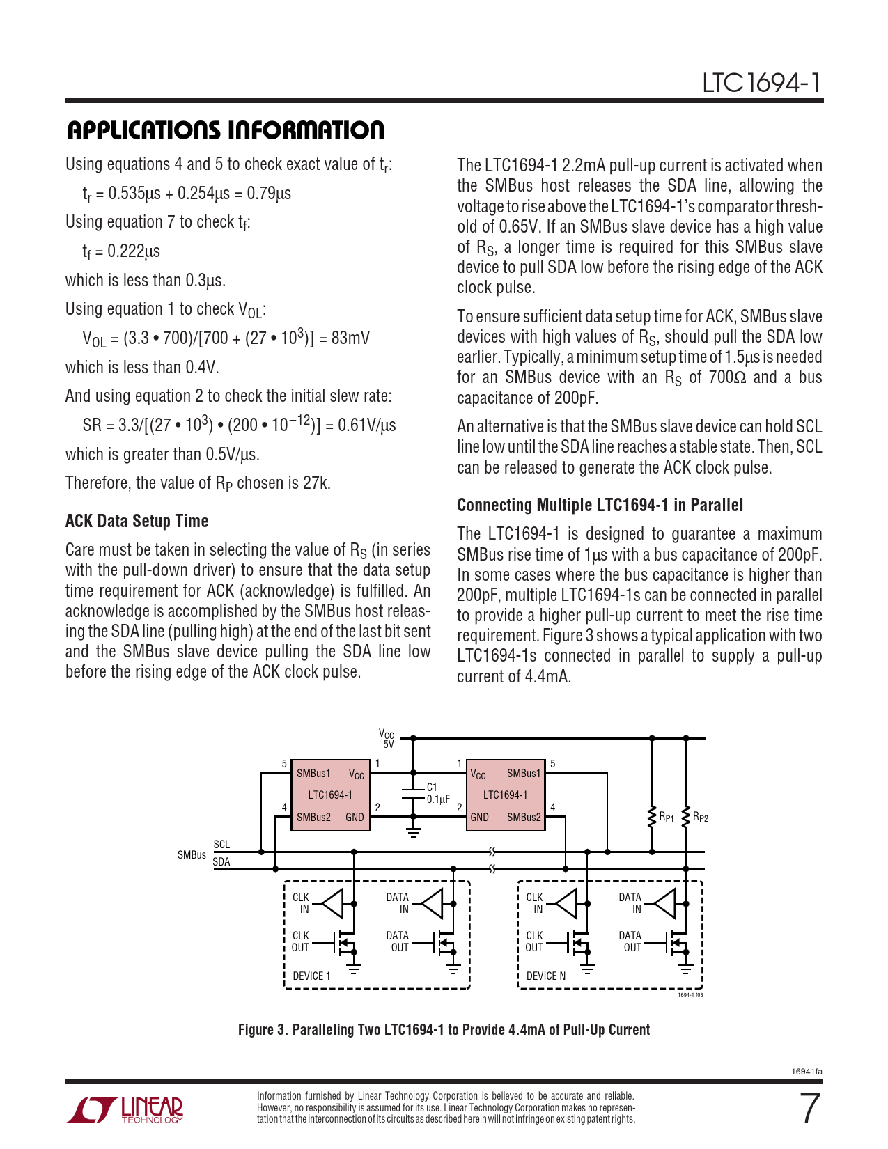 Pages / Page8 / 7 — APPLICATIONS INFORMATION. Connecting Multiple LTC1694-1 in Parallel. ACK …