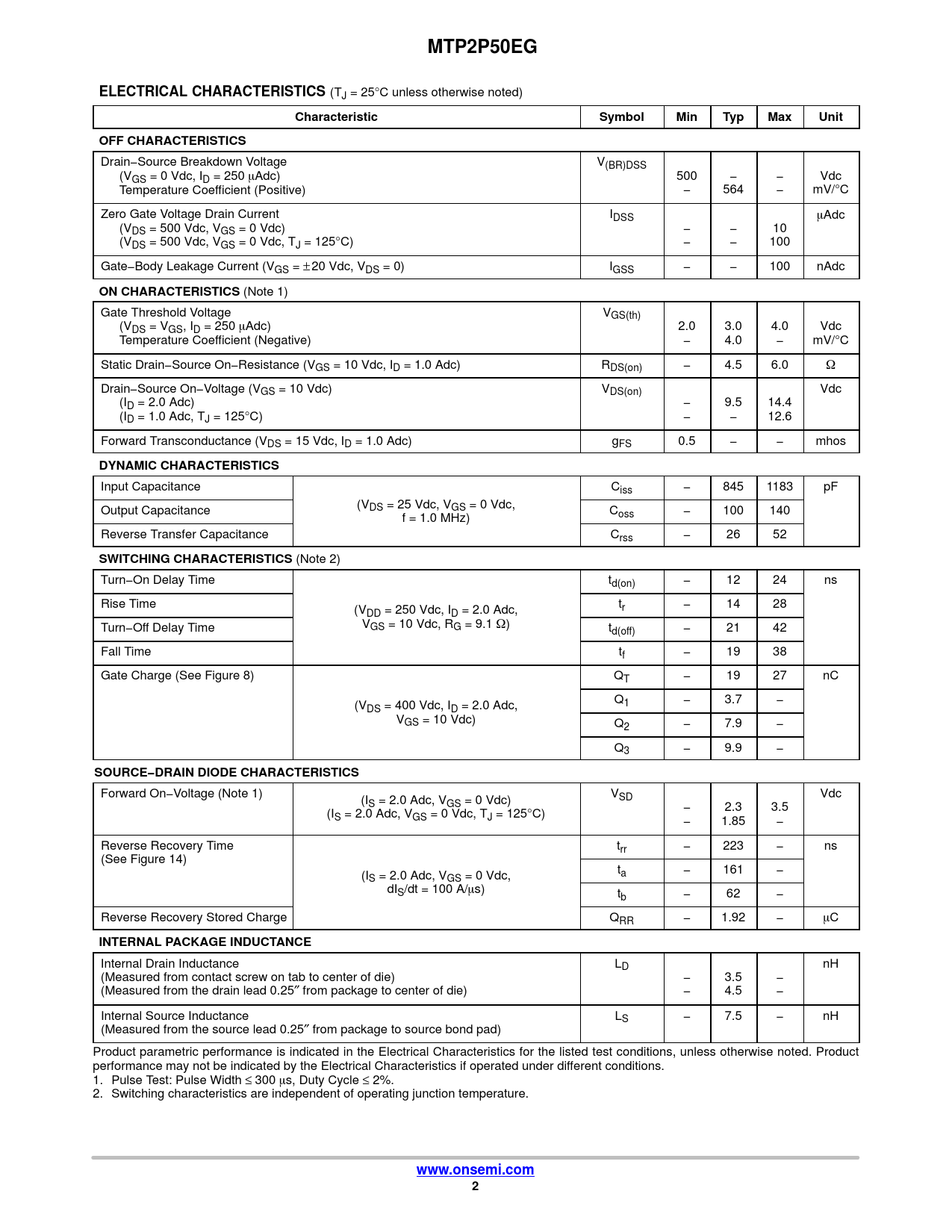 Datasheet MTP2P50EG (ON Semiconductor) - 2