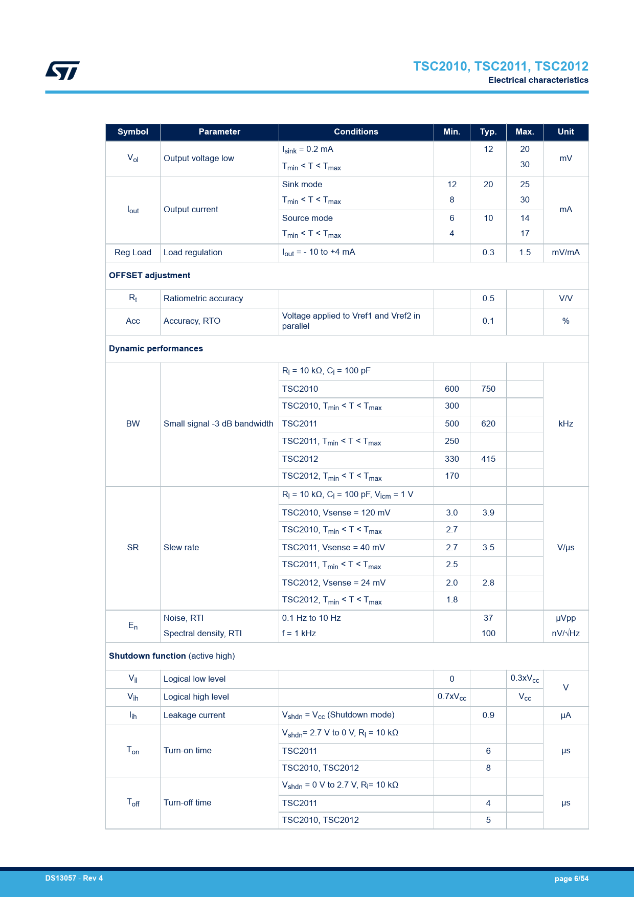 Datasheet TSC2010, TSC2011, TSC2012 (STMicroelectronics) - 6