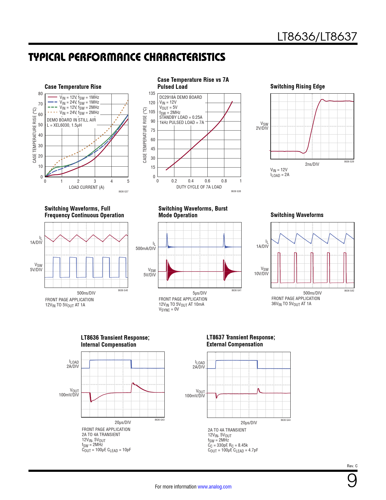 TYPICAL PERFORMANCE CHARACTERISTICS. Case Temperature Rise vs 7A. Case Temperature Rise. Pulsed Load. Switching Rising Edge