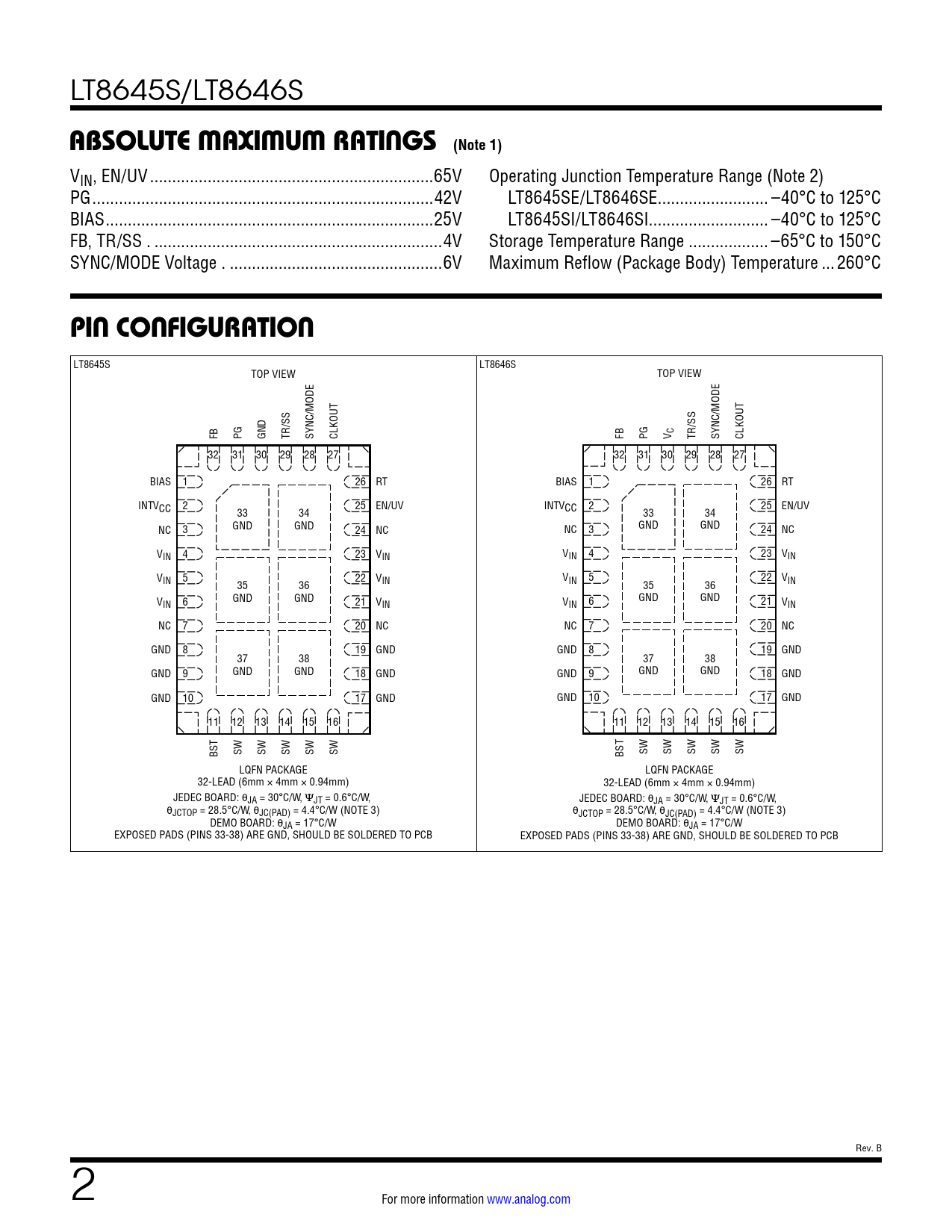 Datasheet LT8645S, LT8646S (Analog Devices) - 2