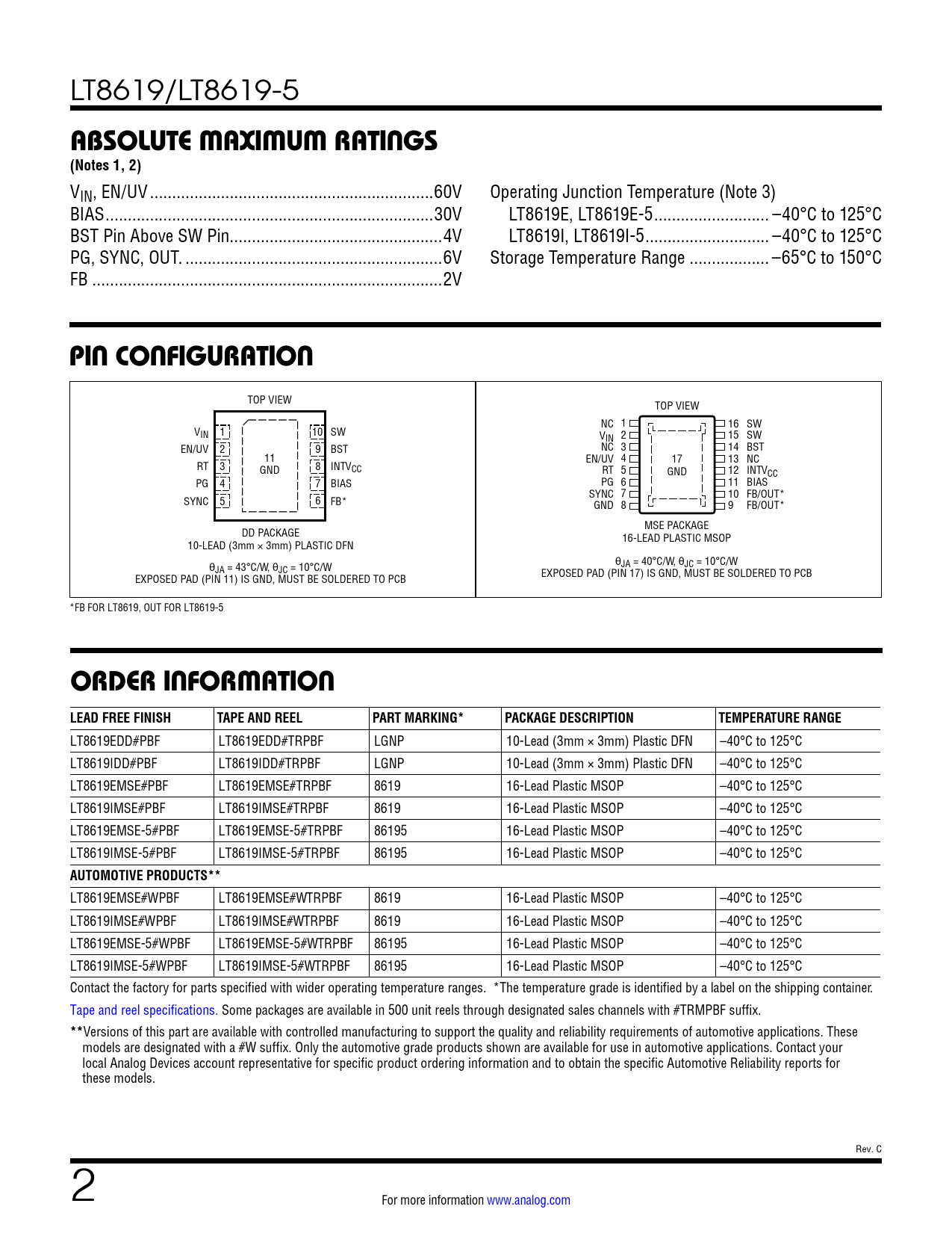 Datasheet LT8619, LT8619-5 (Analog Devices) - 2