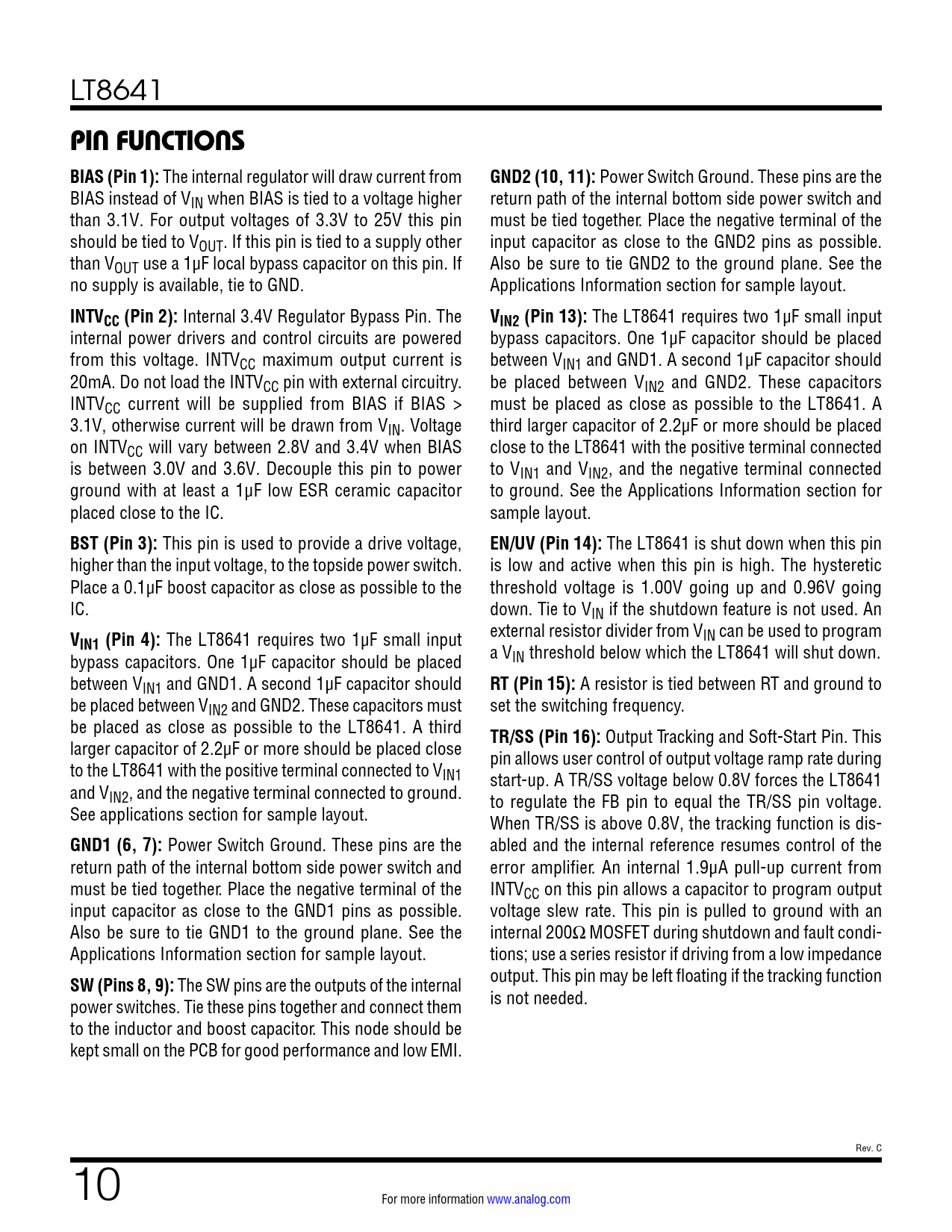 Pages / Page26 / 10 — PIN FUNCTIONS BIAS (Pin 1):. GND2 (10, 11):. INTVCC (Pin 2):. VIN2 (Pin …
