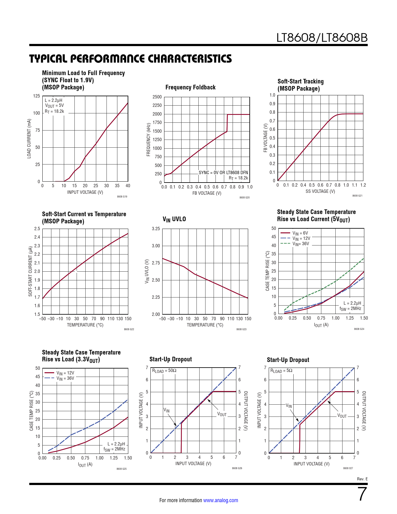 TYPICAL PERFORMANCE CHARACTERISTICS Minimum Load to Full Frequency (SYNC Float to 1.9V) Soft-Start Tracking (MSOP Package) Frequency Foldback (MSOP Package) Soft-Start Tracking
