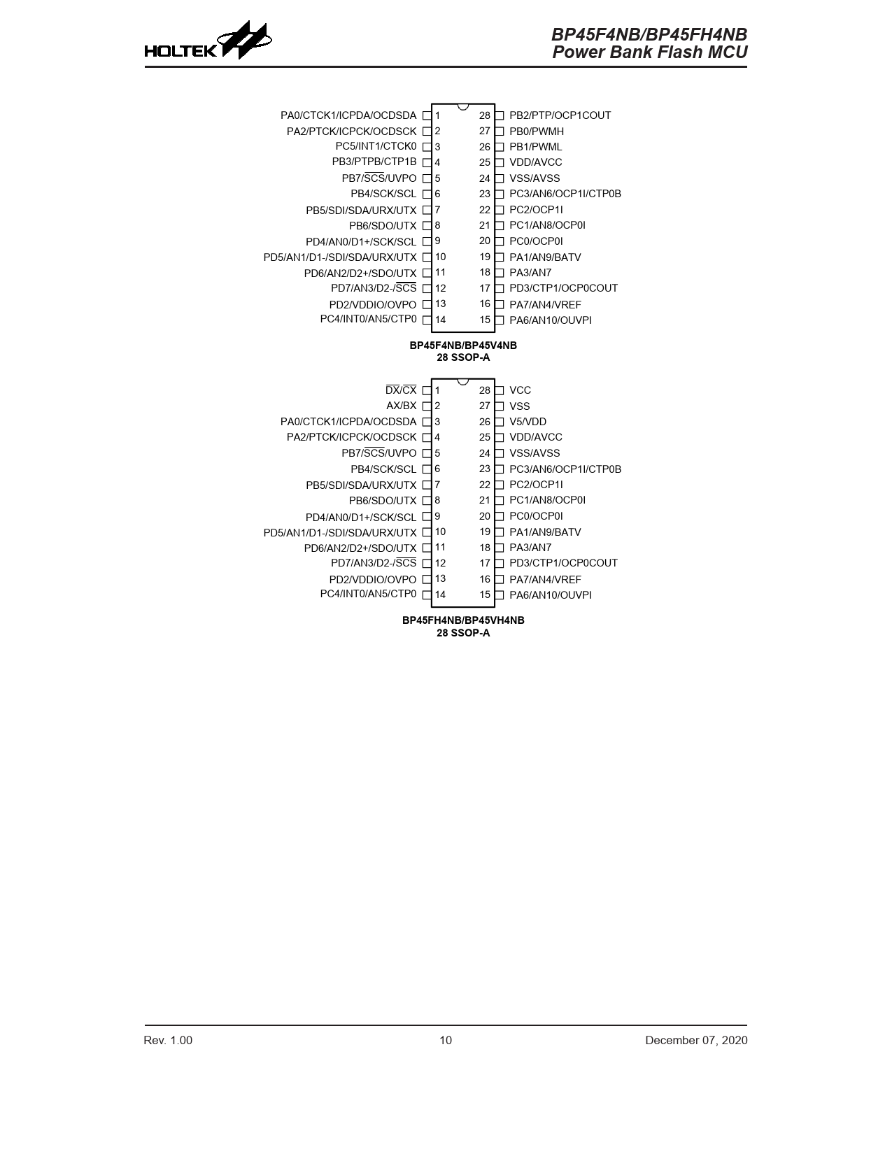 | Pages / Page | 206 / 10 — BP45F4NB/BP45FH4NB. Power Bank Flash MCU. BP45F4NB/BP45V4NB. 28 SSOP-A. … |