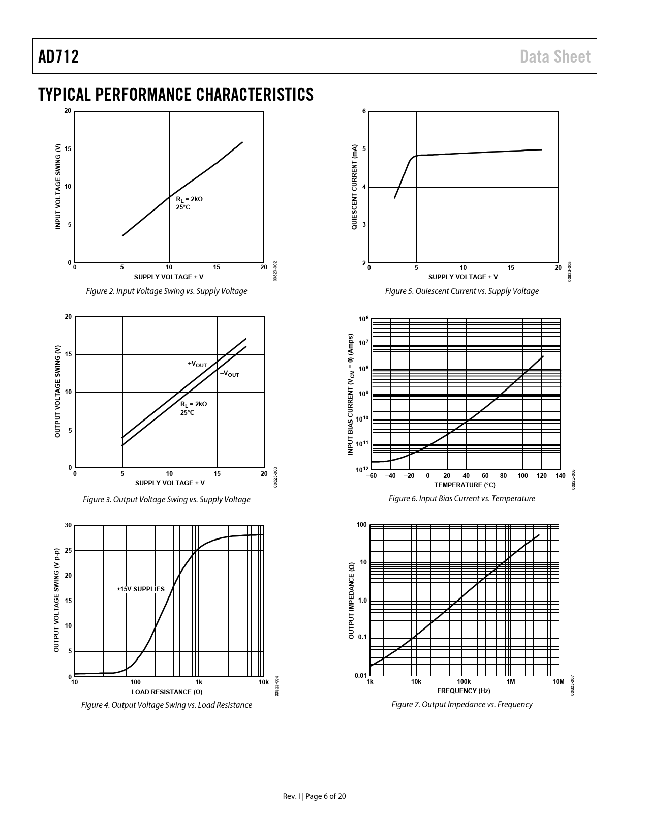 AD712 Data Sheet TYPICAL PERFORMANCE CHARACTERISTICS V) 15 G ( (mA) WIN S GE 10 CURRE 4 OLTA RL = 2kΩ 25°C T V PU ESCE UI IN 5 Q 3