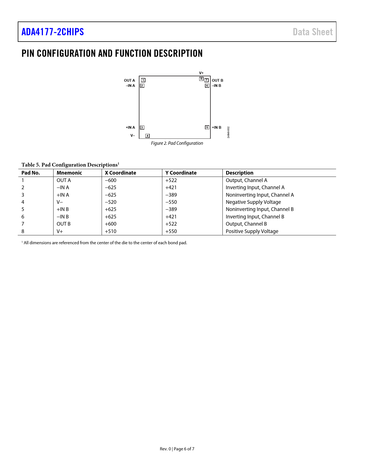 Pages / Page7 / 6 — ADA4177-2CHIPS. Data Sheet. PIN CONFIGURATION AND FUNCTION DESCRIPTION. …