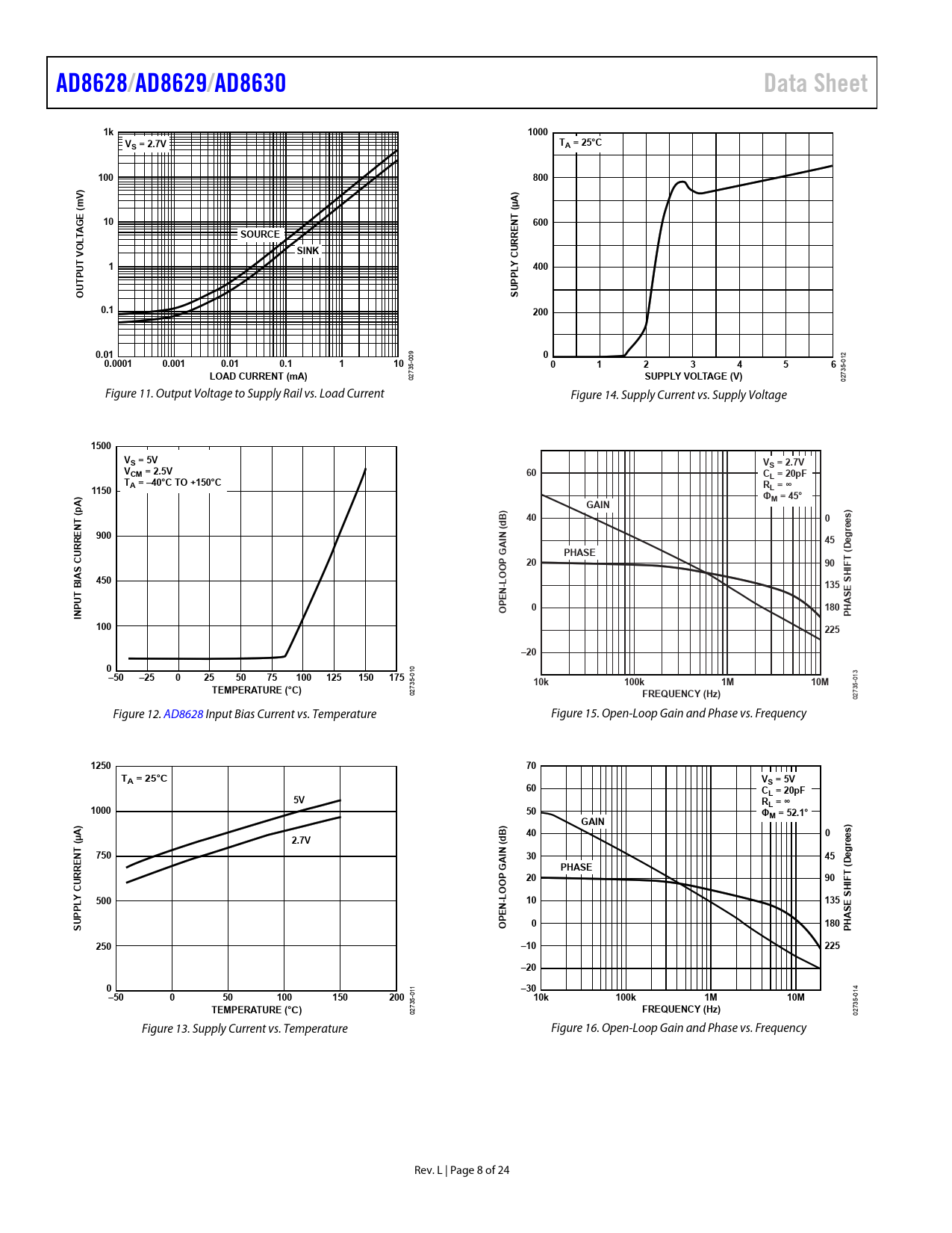 AD8628/. AD8629/. AD8630. Data Sheet. 1000. VS = 2.7V. TA = 25°C. 100. 800. ) V. 600. SOURCE. LTA. SINK. V T. CUR. 400. 0.1. 200. 0.01. 0.0001. 0.001