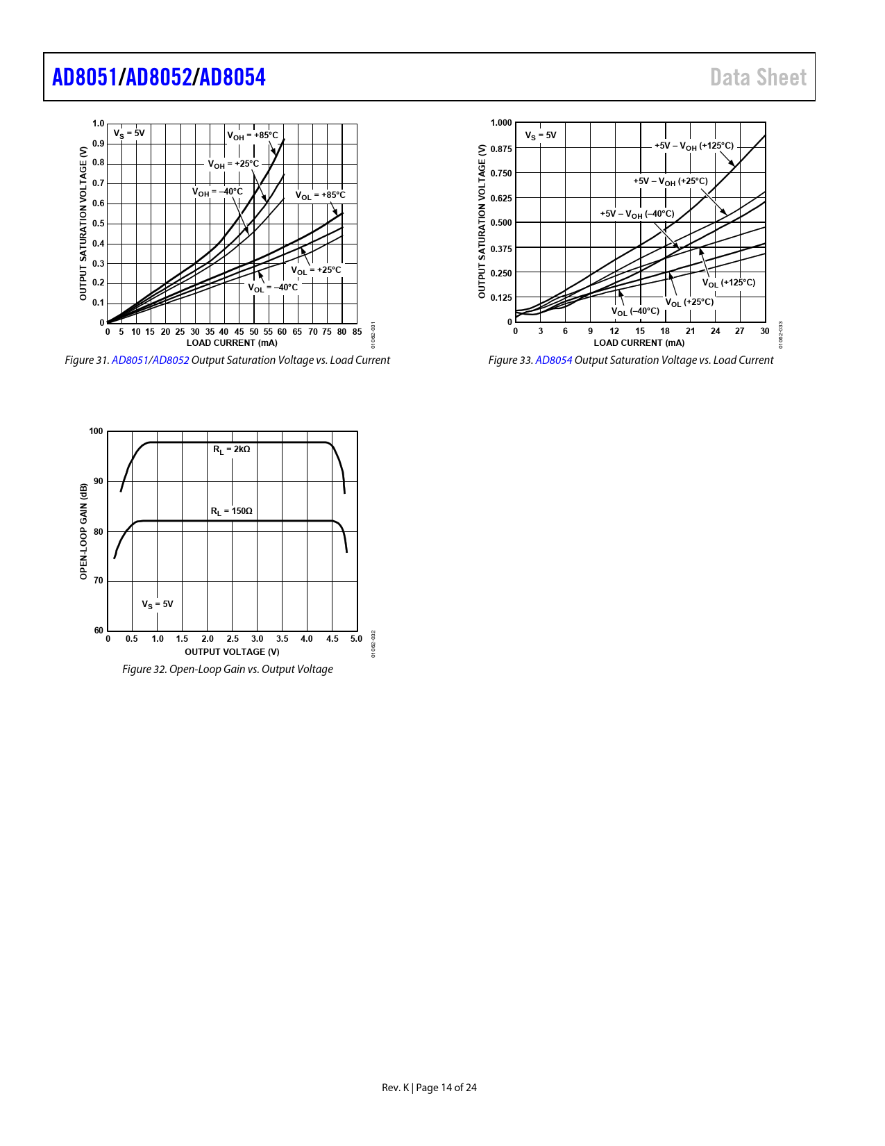 | Pages / Page | 24 / 14 — AD8051/. AD8052/. AD8054. Data Sheet. 1.0. 1.000. VS = 5V. VOH = +85°C. … |