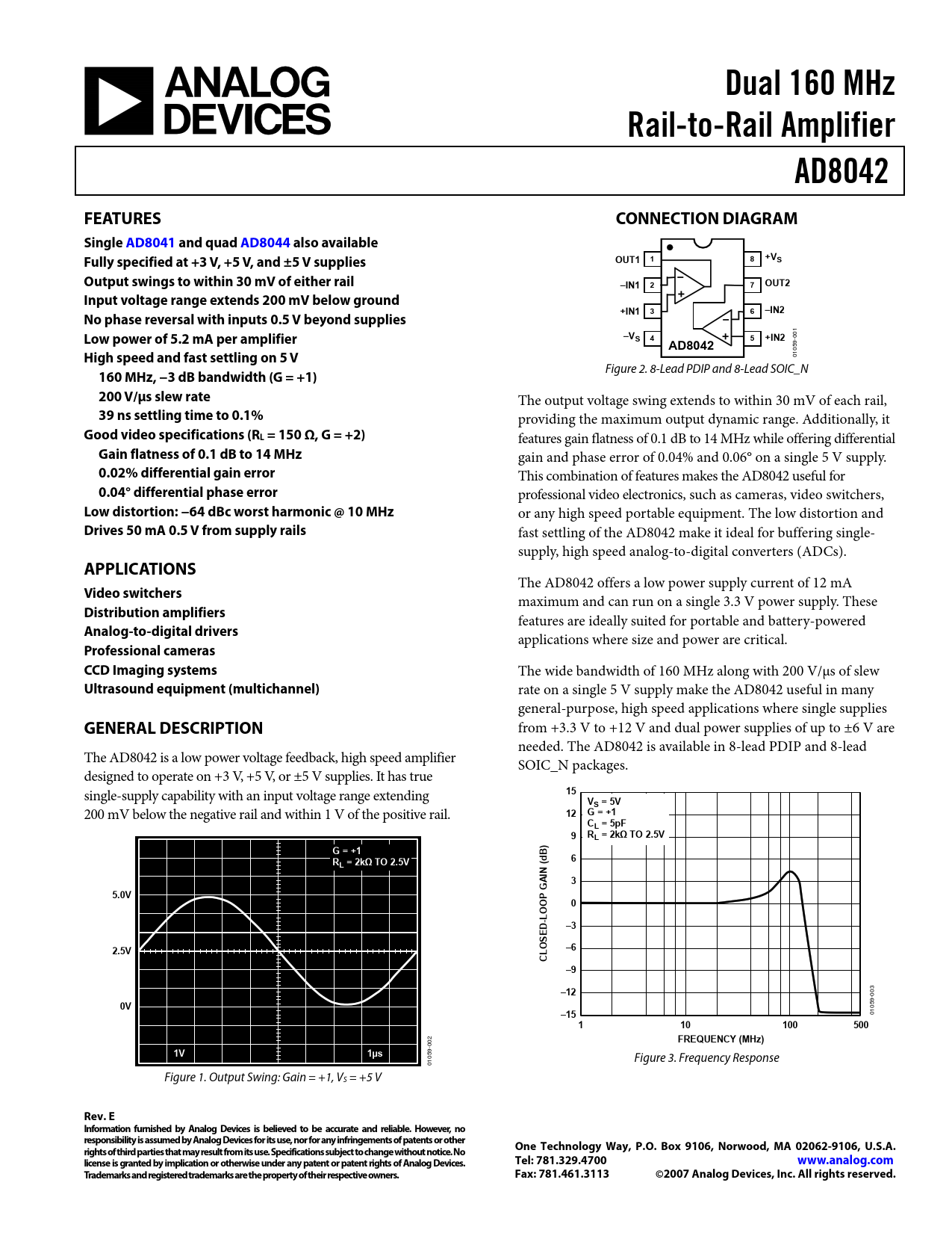 | Pages / Page | 16 / 1 — Dual 160 MHz. Rail-to-Rail Amplifier. AD8042. FEATURES. CONNECTION … |