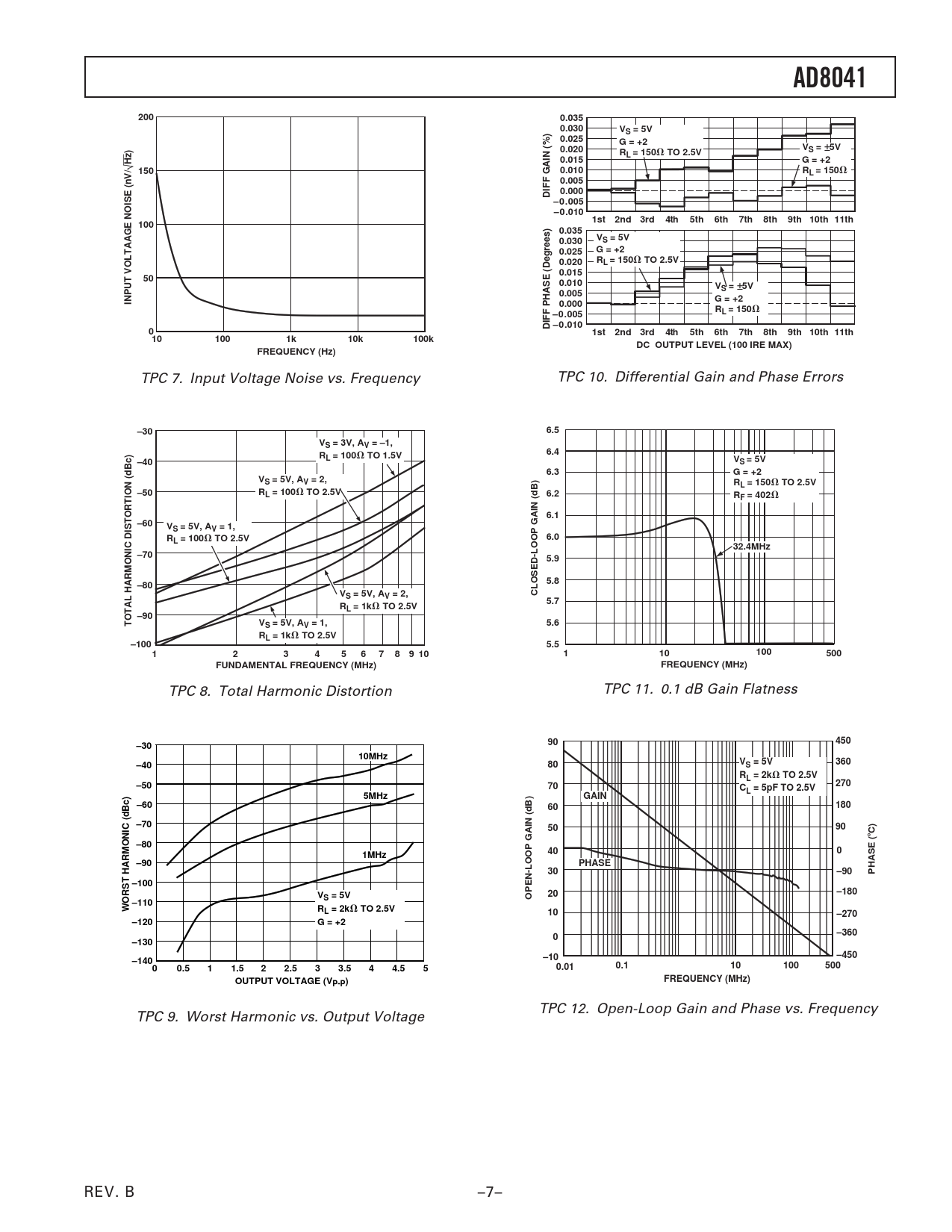 TPC 7. Input Voltage Noise vs. Frequency TPC 10. Differential Gain and Phase Errors
