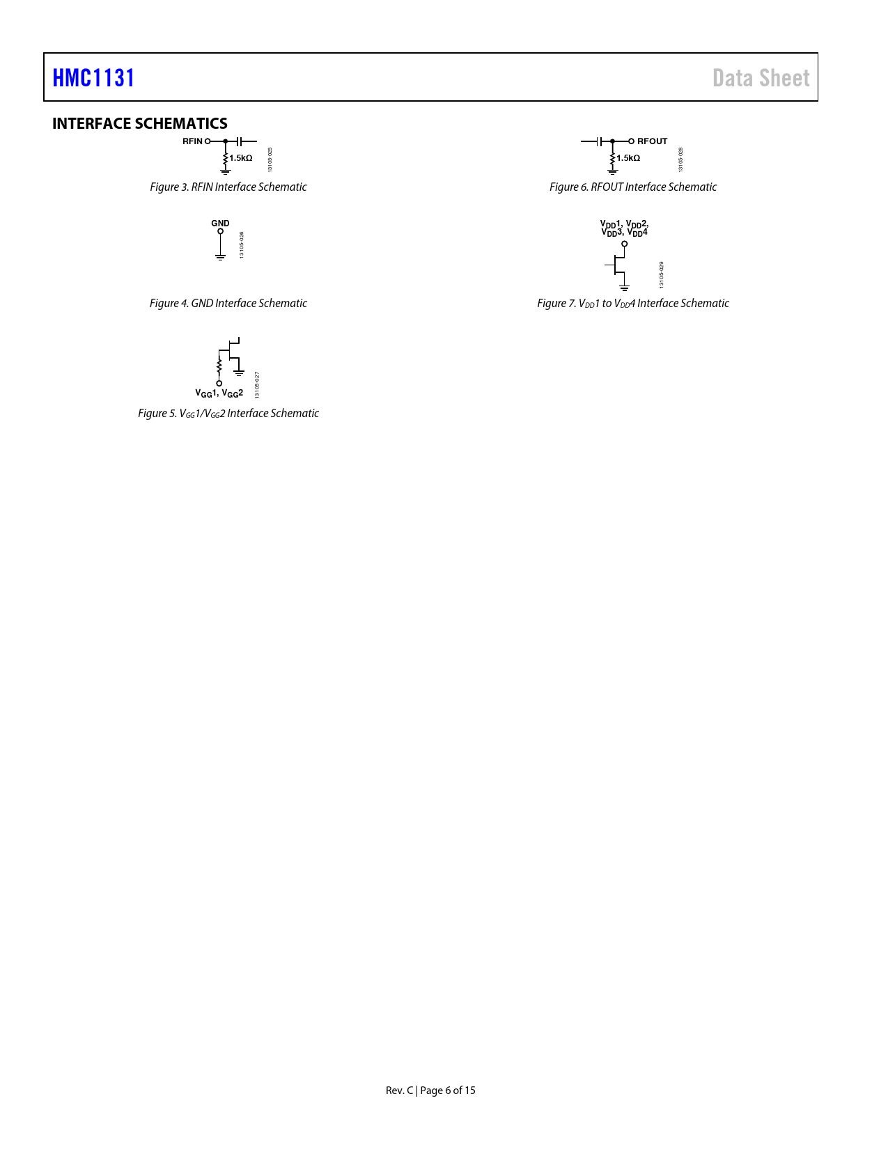 | Pages / Page | 15 / 6 — HMC1131. Data Sheet. INTERFACE SCHEMATICS. RFIN. RFOUT. 1.5kΩ. GND. VDD1, … |