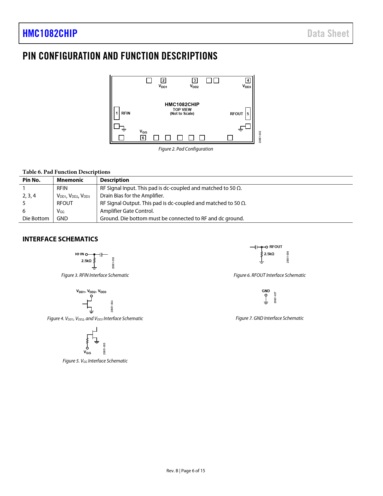 Pages / Page15 / 6 — HMC1082CHIP. Data Sheet. PIN CONFIGURATION AND FUNCTION DESCRIPTIONS. …