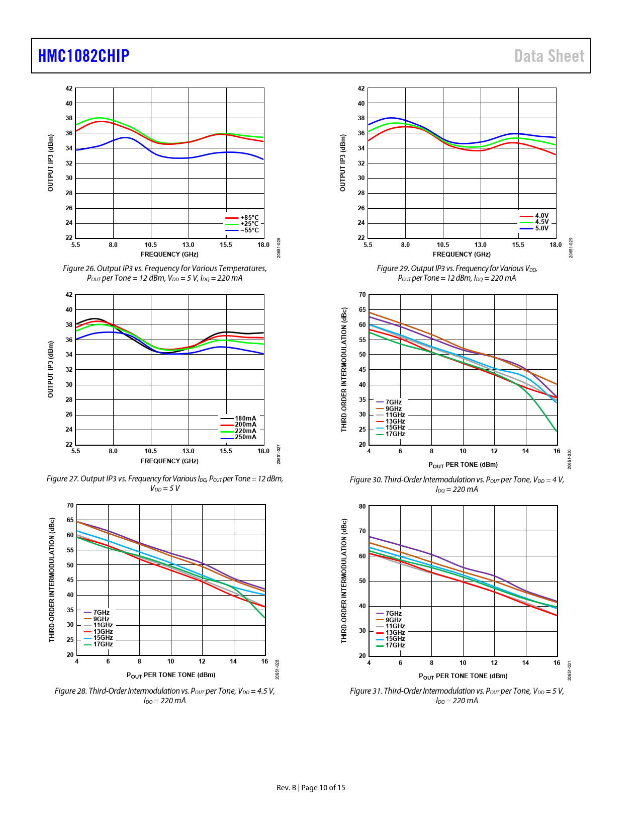 HMC1082CHIP. Data Sheet. dBm). IP3 (. PUT. +85°C. 4.0V. +25°C. 4.5V. –55°C. 5.0V. 5.5. 8.0. 10.5. 13.0. 15.5. 18.0. FREQUENCY (GHz). dBc). N (. DUL. ERM. R I. RDE
