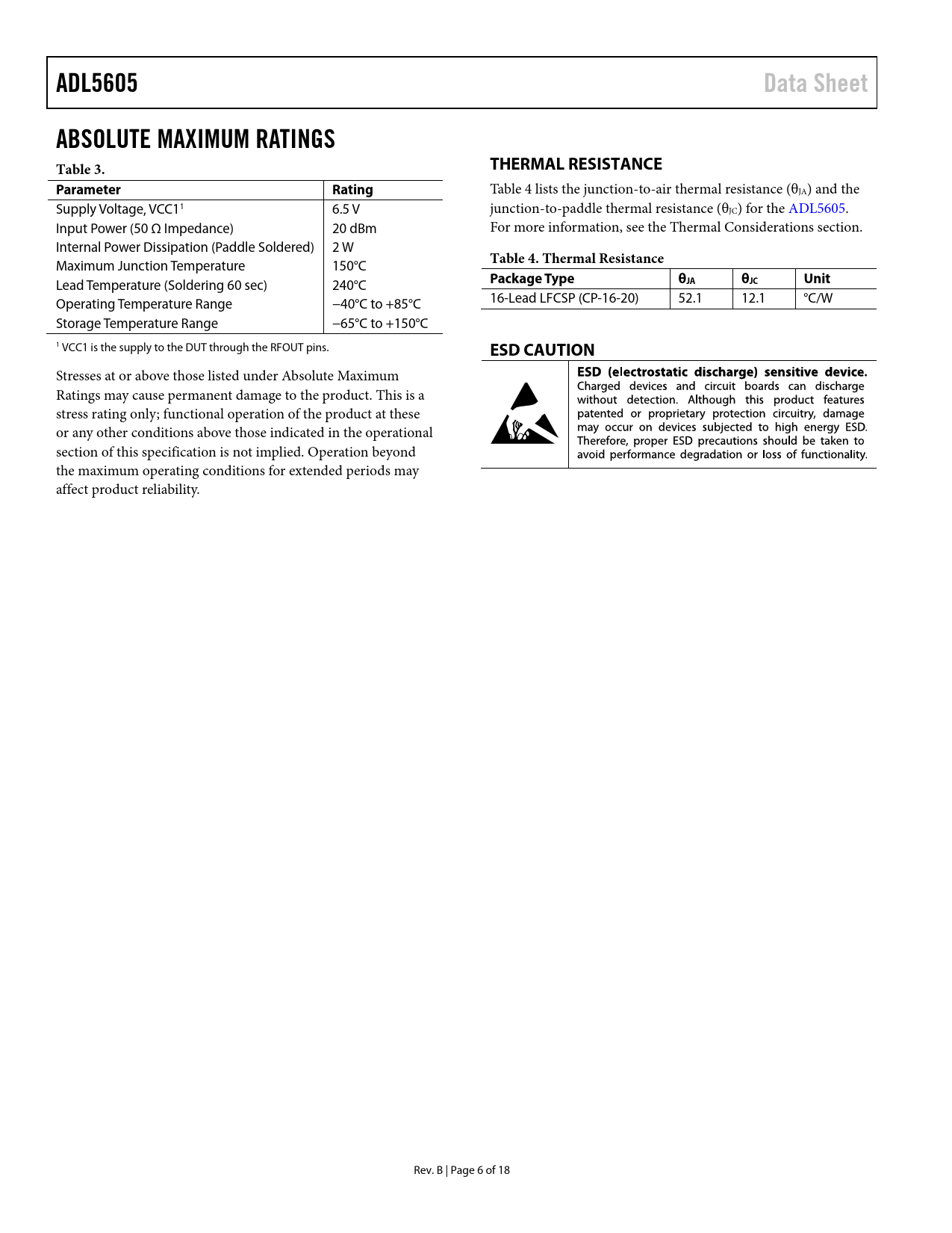 Pages / Page18 / 6 — ADL5605. Data Sheet. ABSOLUTE MAXIMUM RATINGS Table 3. THERMAL …