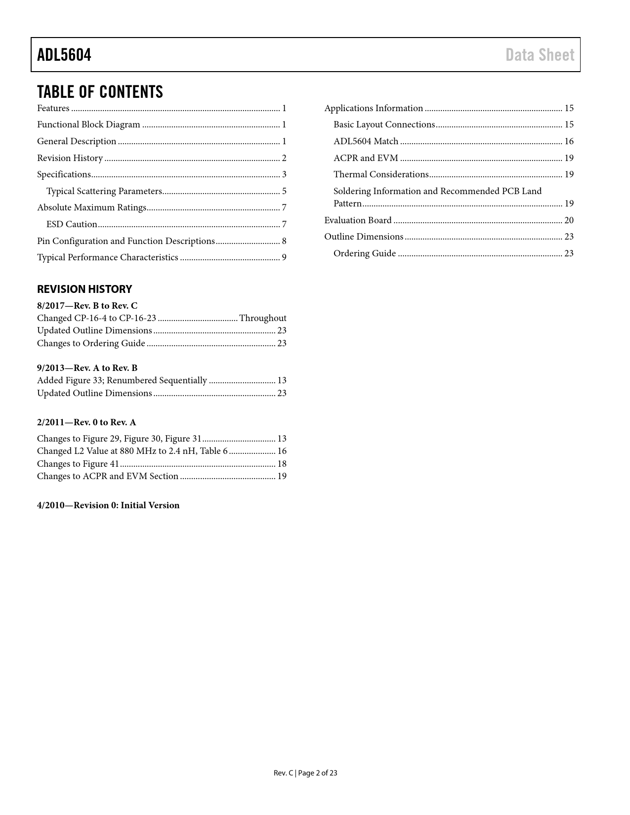 Pages / Page23 / 2 — ADL5604. Data Sheet. TABLE OF CONTENTS. REVISION HISTORY 8/2017—Rev. B to …