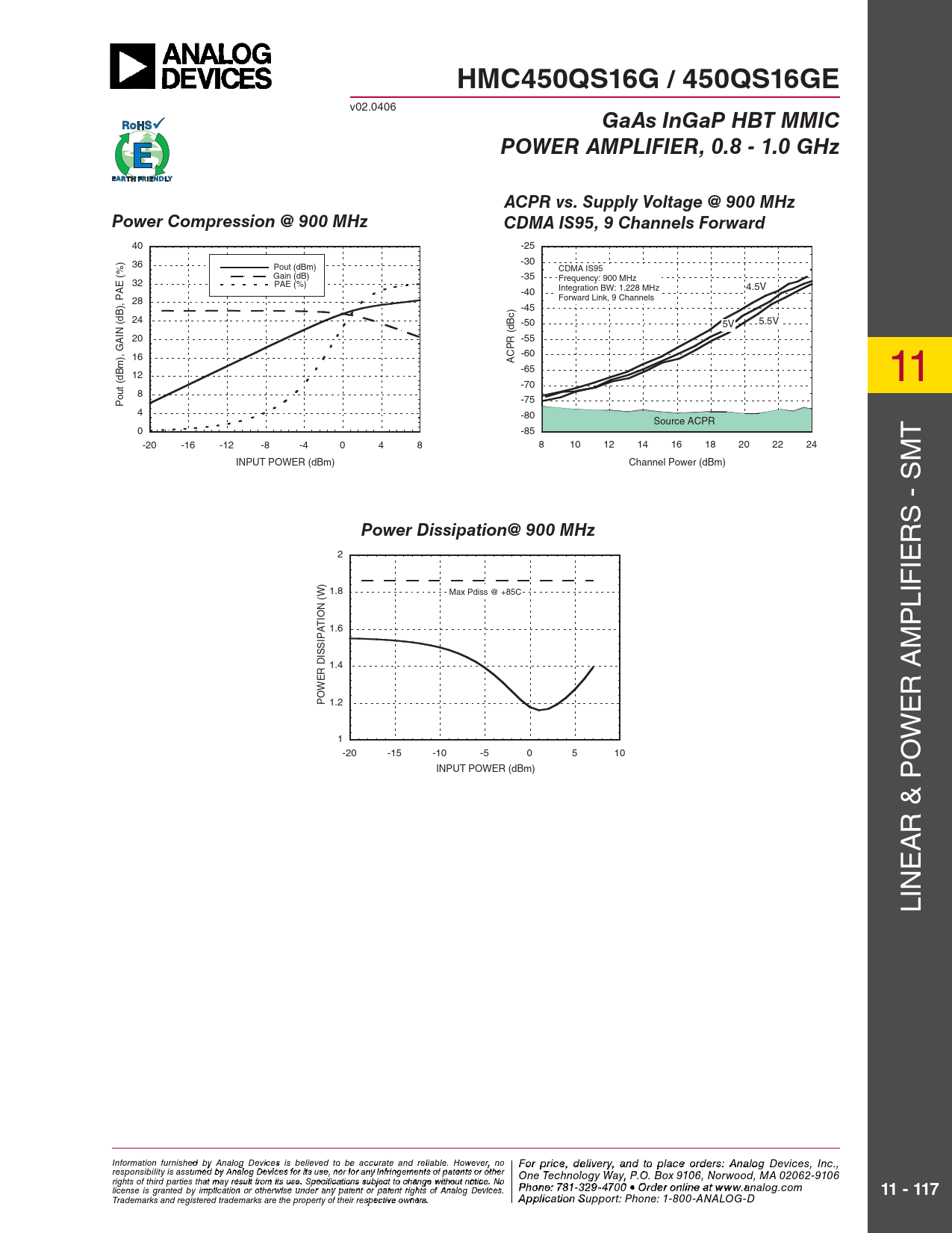 Pages / Page8 / 4 — HMC450QS16G / 450QS16GE. GaAs InGaP HBT MMIC. POWER AMPLIFIER, 0.8 - 1.0 …