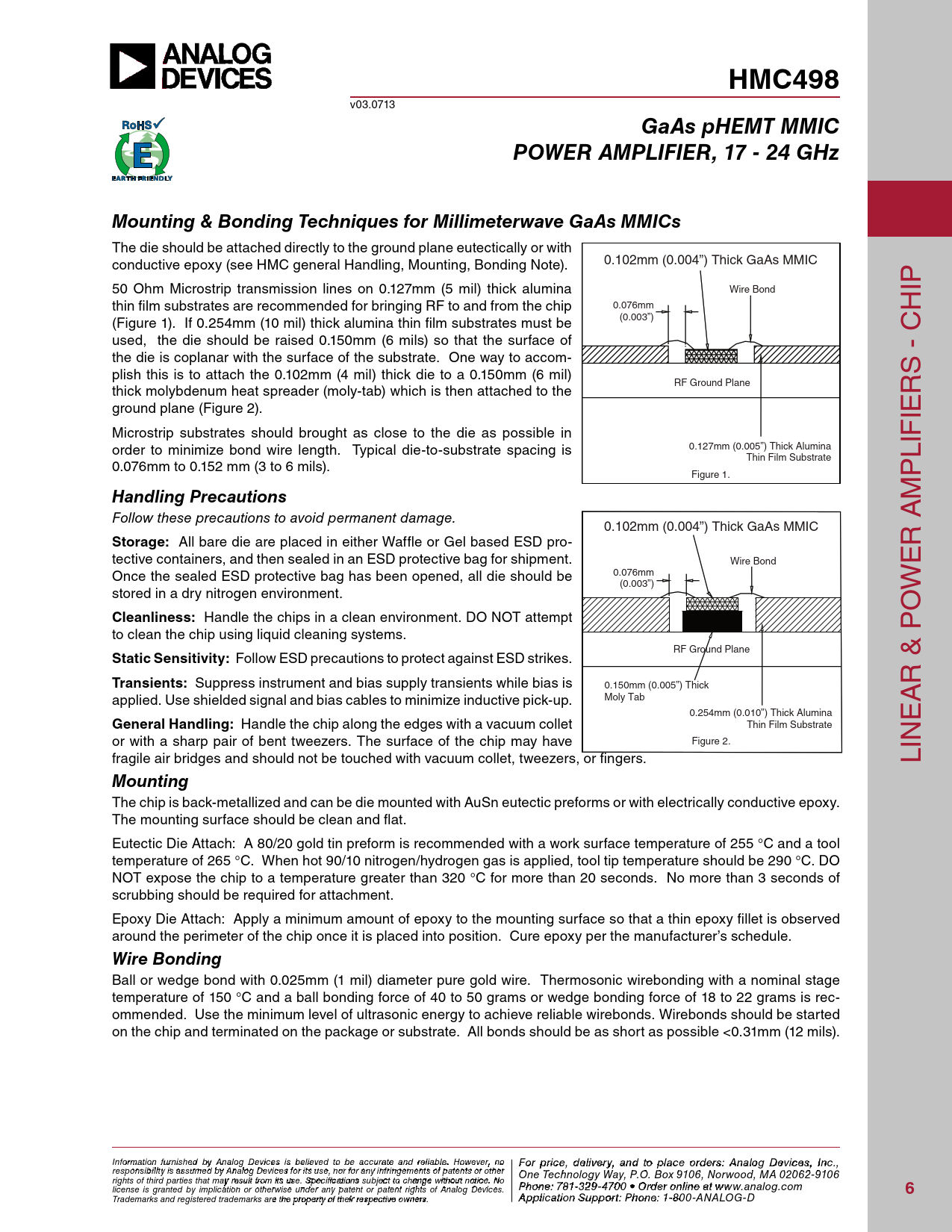Pages / Page6 / 6 — HMC498. GaAs pHEMT MMIC. POWER AMPLIFIER, 17 - 24 GHz. Mounting & …