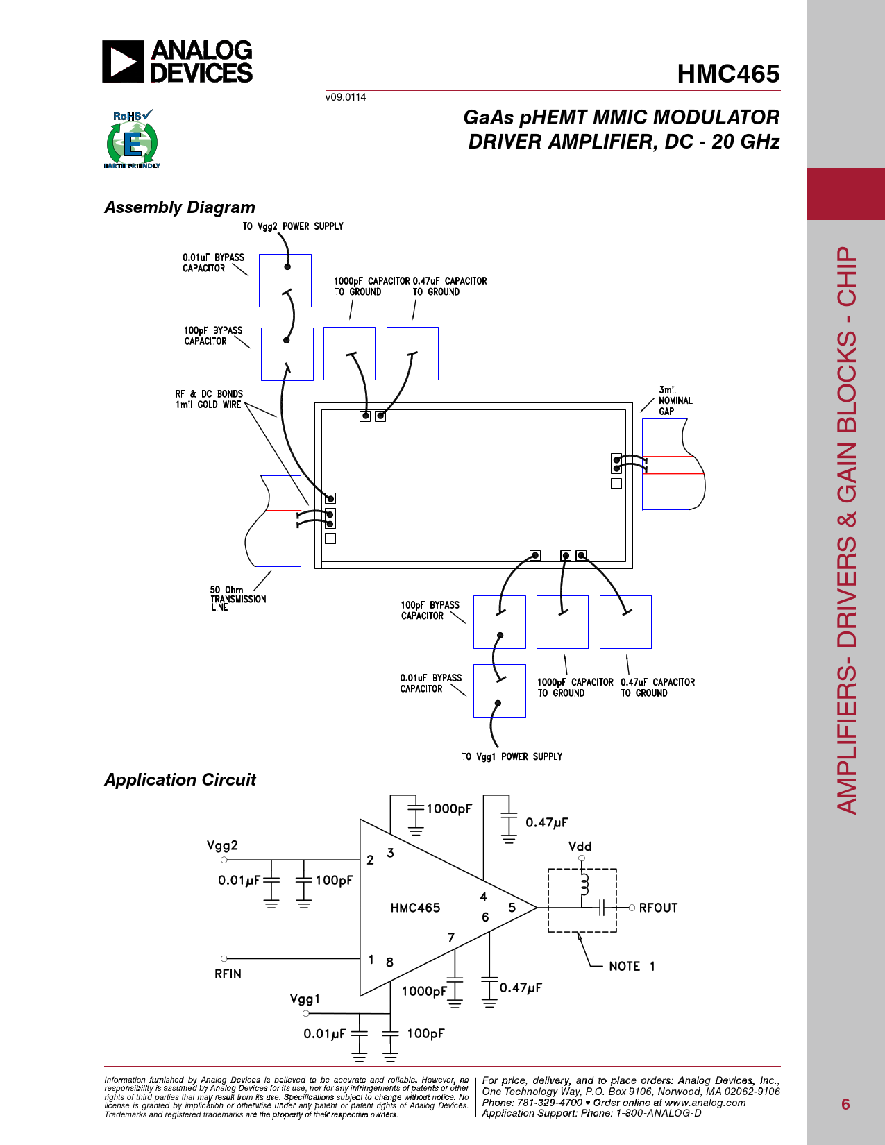 HMC465. GaAs pHEMT MMIC MODULATOR. DRIVER AMPLIFIER, DC - 20 GHz. Assembly Diagram. Application Circuit