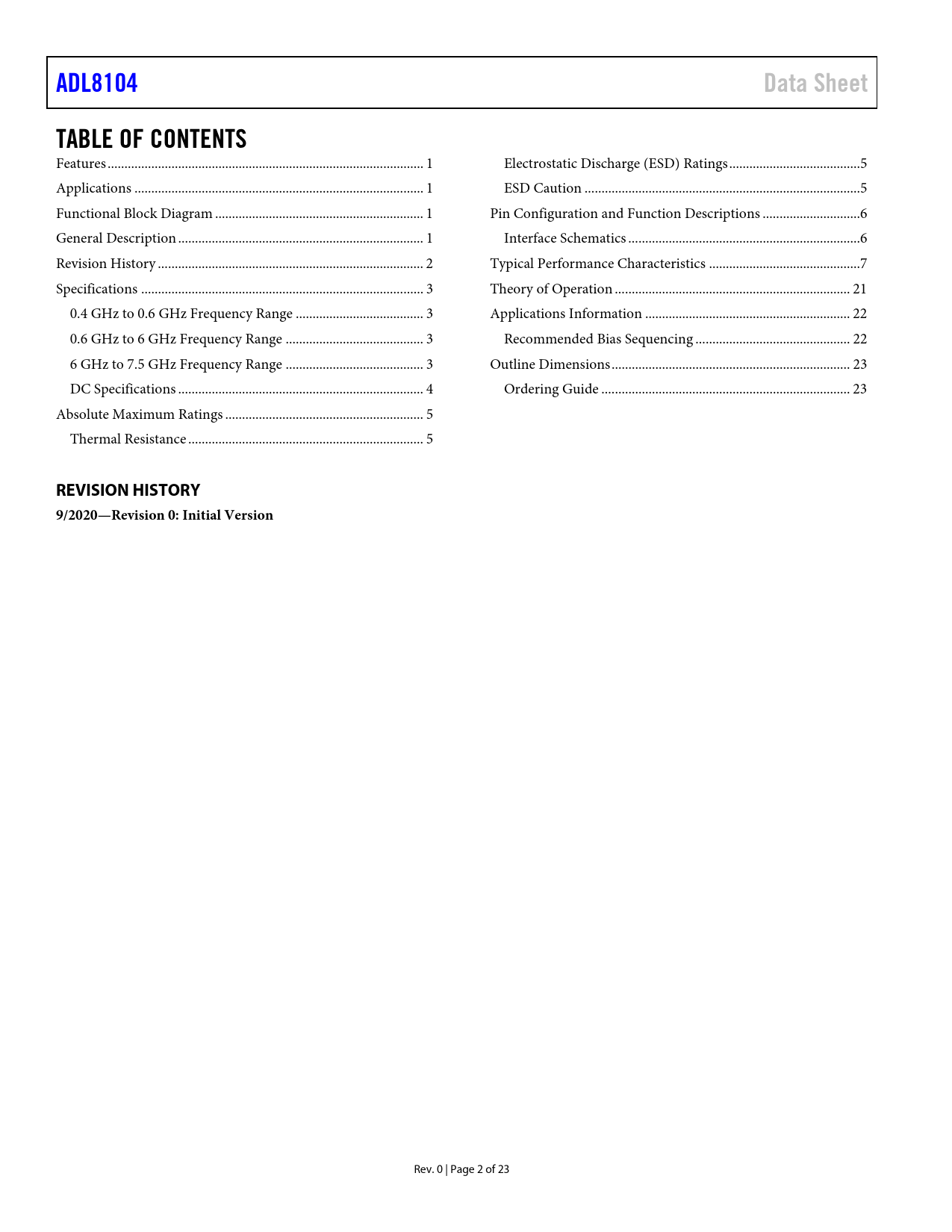 Pages / Page23 / 2 — ADL8104. Data Sheet. TABLE OF CONTENTS. REVISION HISTORY 9/2020—Revision …