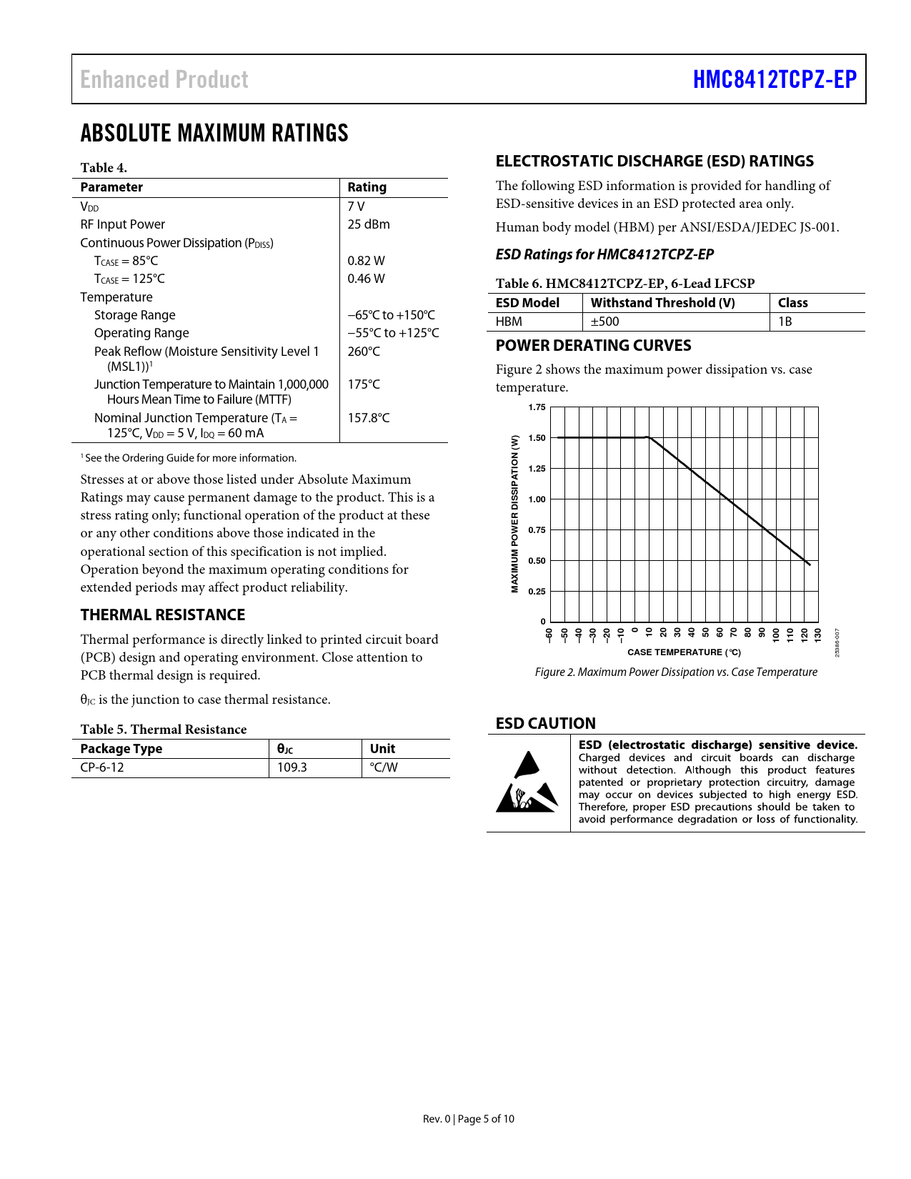 Enhanced Product. HMC8412TCPZ-EP. ABSOLUTE MAXIMUM RATINGS Table 4. ELECTROSTATIC DISCHARGE (ESD) RATINGS. Parameter. Rating