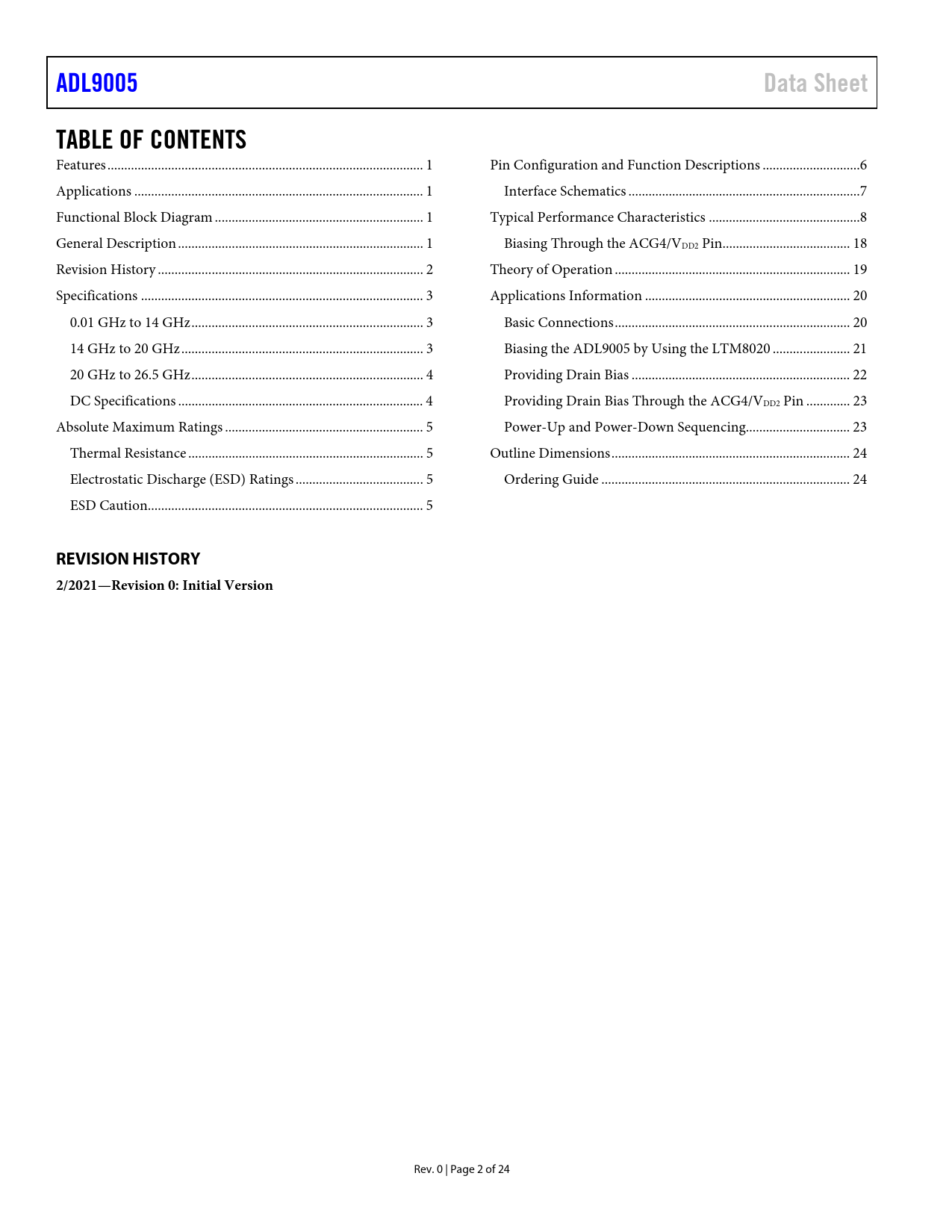 Pages / Page24 / 2 — ADL9005. Data Sheet. TABLE OF CONTENTS. REVISION HISTORY. 2/2021—Revision …